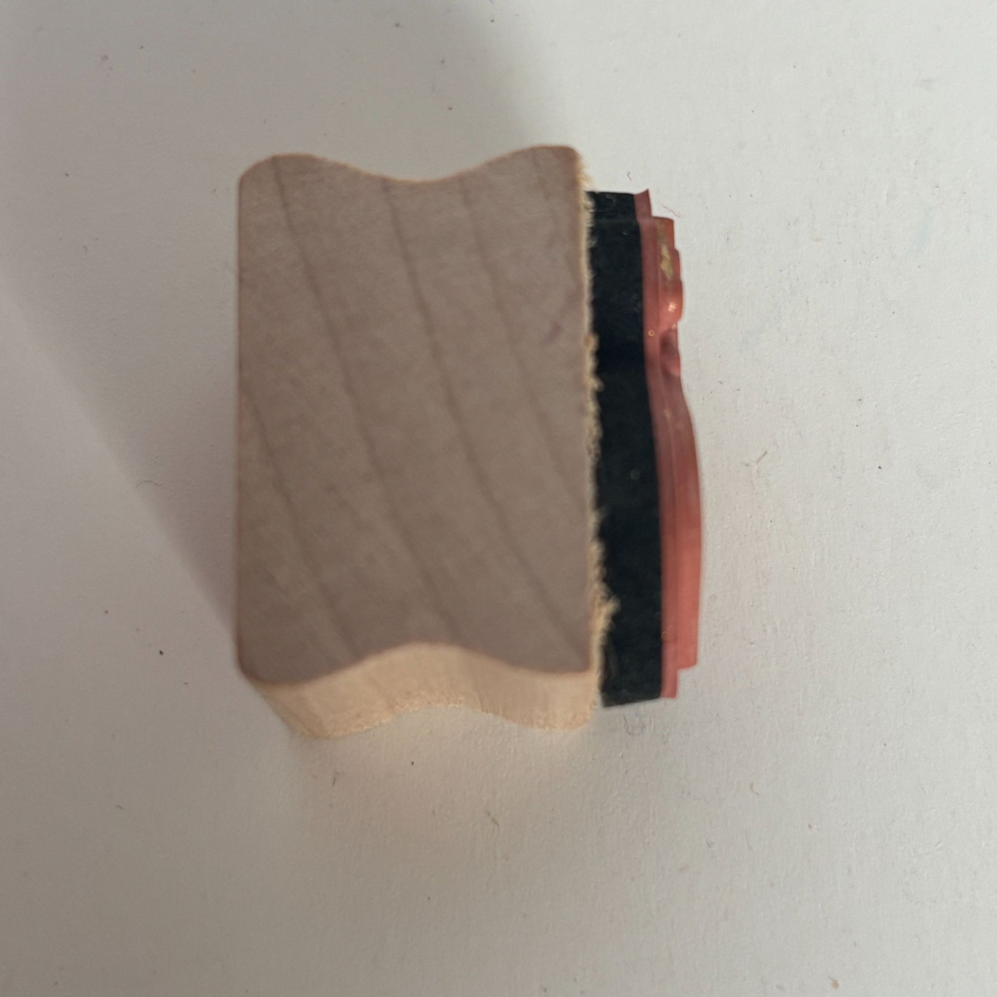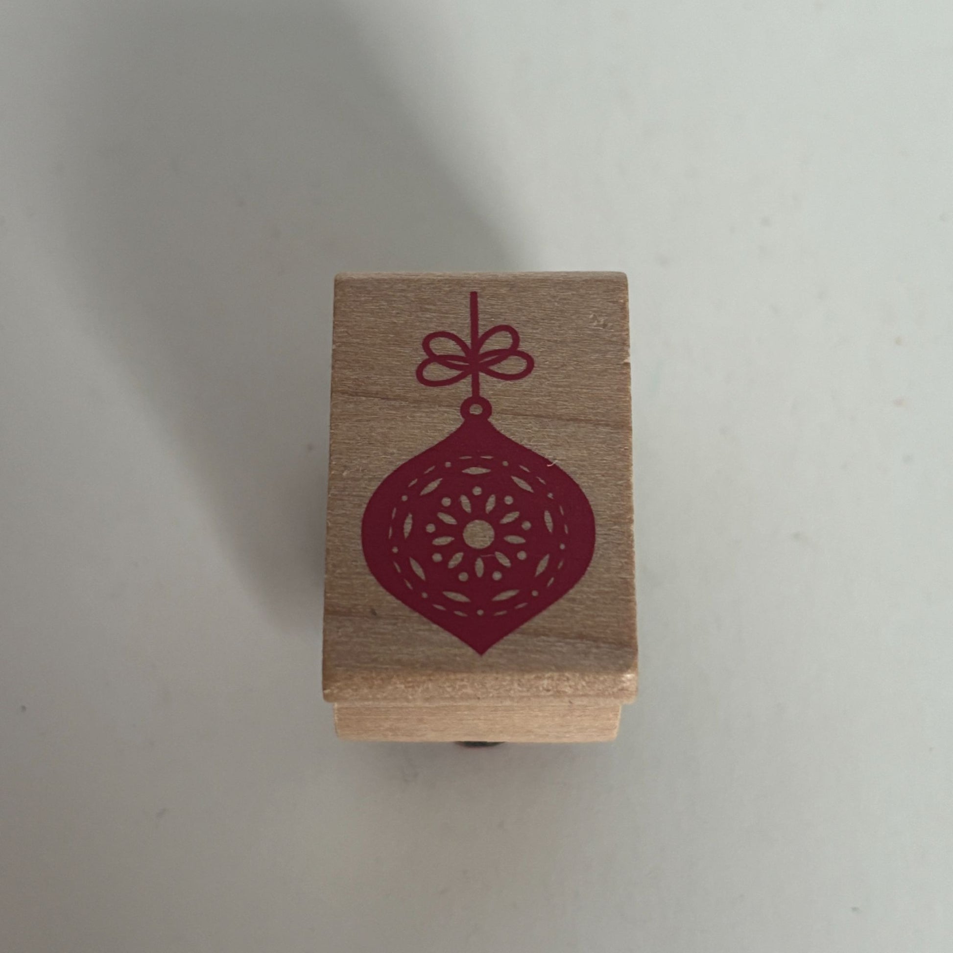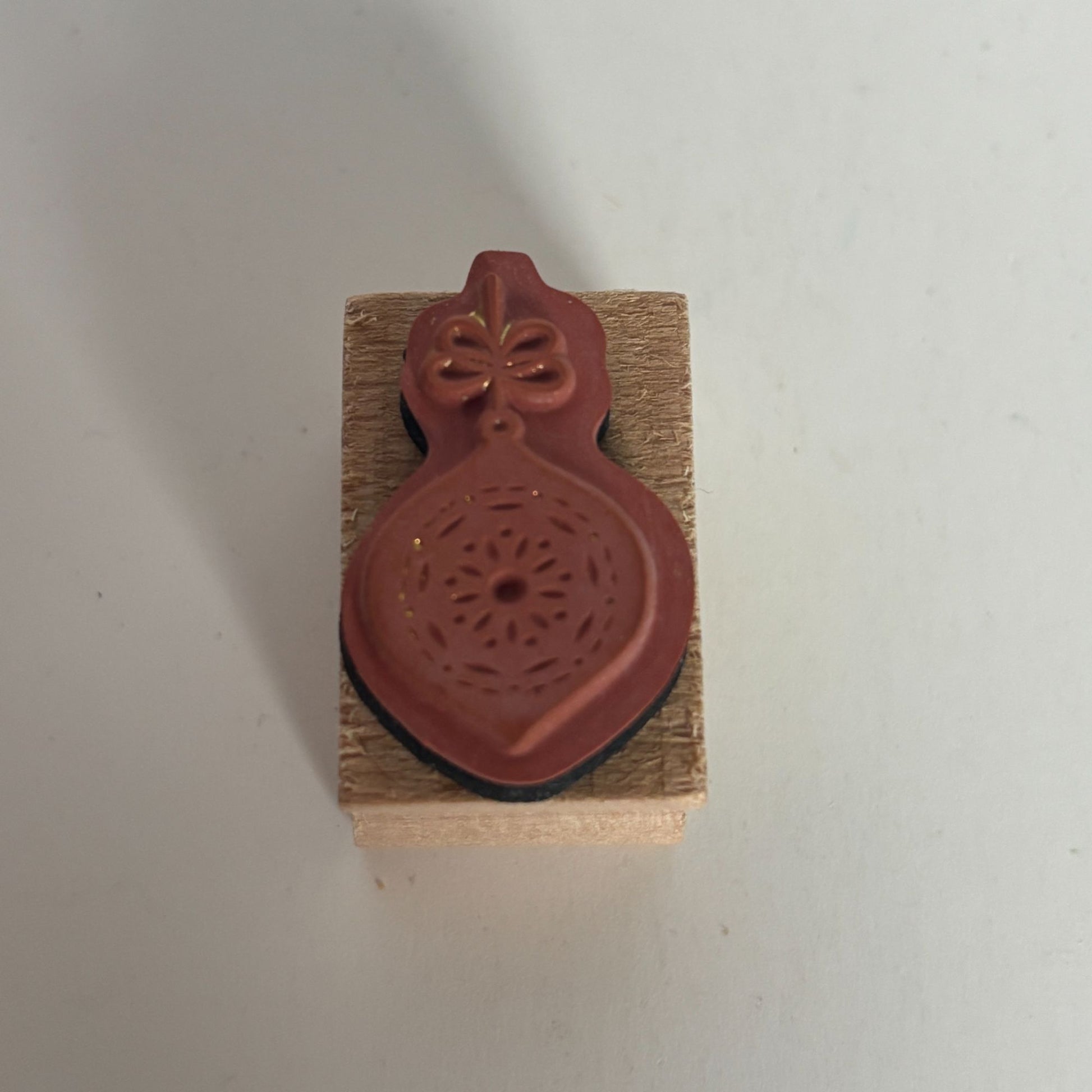 This wooden rubber stamp features a charming ornament design, adding a festive touch to crafting projects. Perfect for personalized cards, gift tags and gift wrapping.