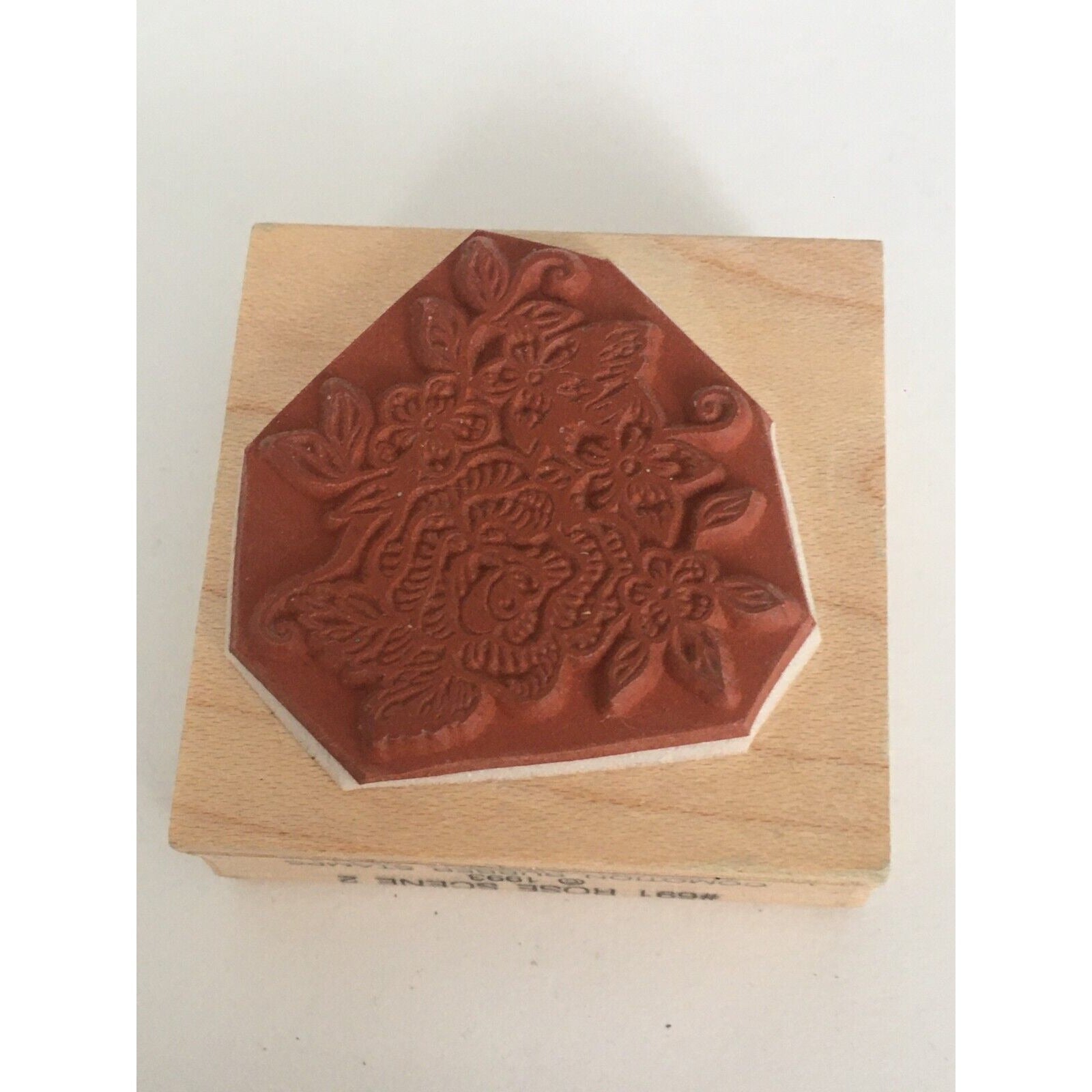 This wood-mounted rubber stamp from CoMotion features a detailed floral design, ideal for crafts, scrapbooking, and decorative projects. Durable and USA-made.