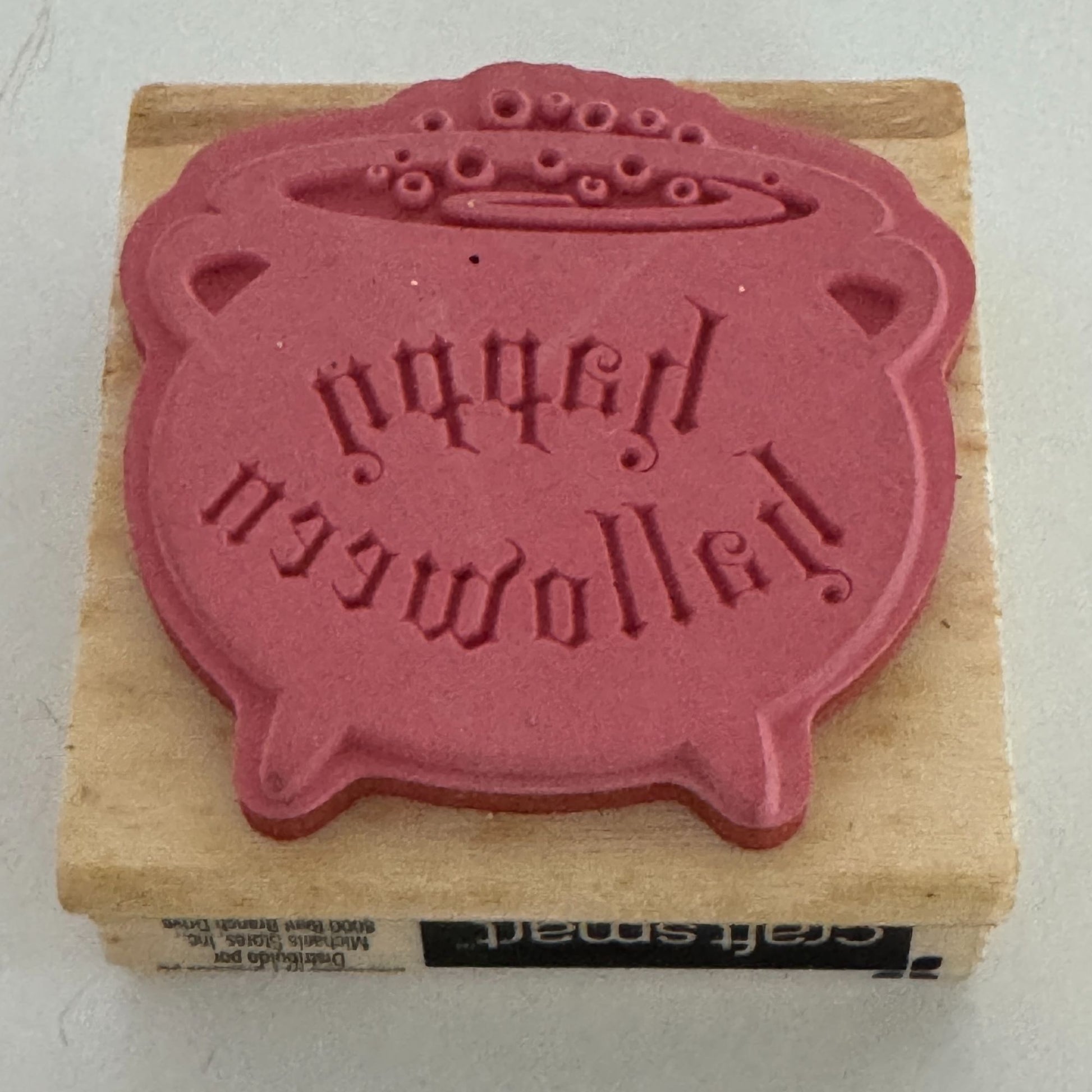 Craft Smart Rubber Stamp Witch Cauldron Happy Halloween Card Making Words Fall