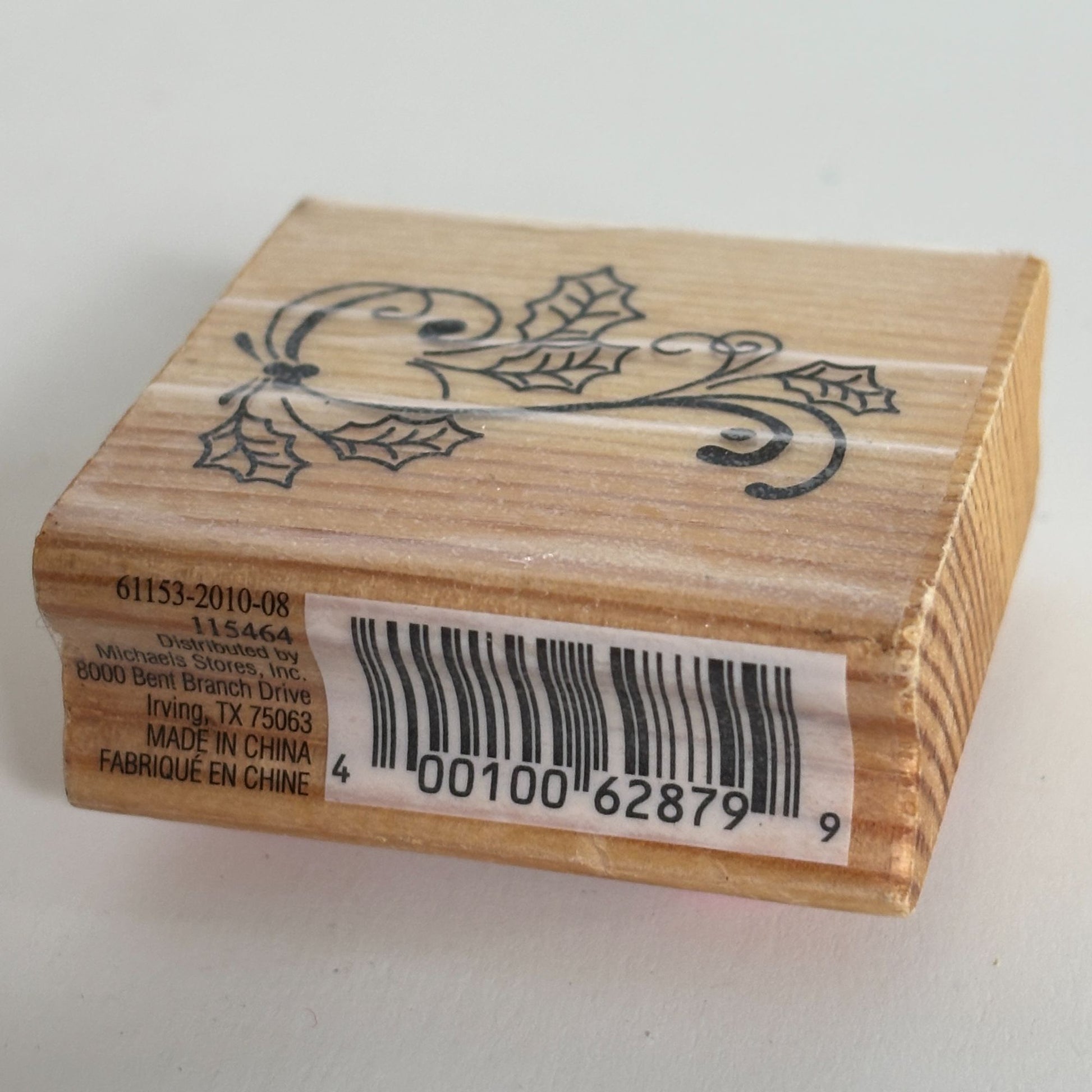 CraftSmart Rubber Stamp Holiday Holly Flourish Christmas Card Making Holidays