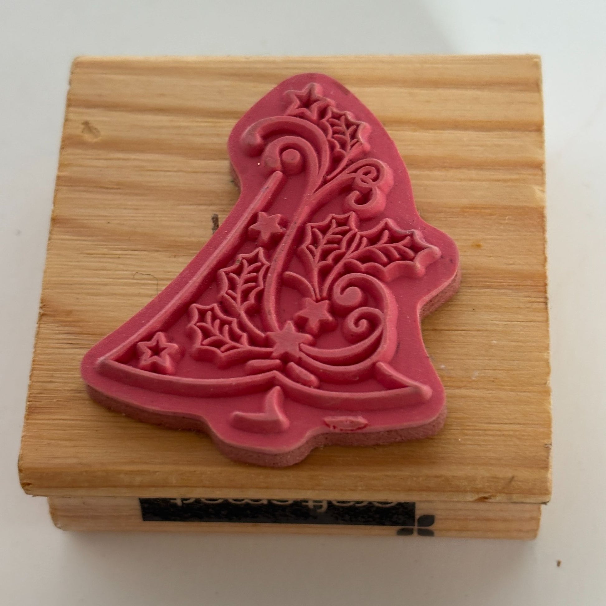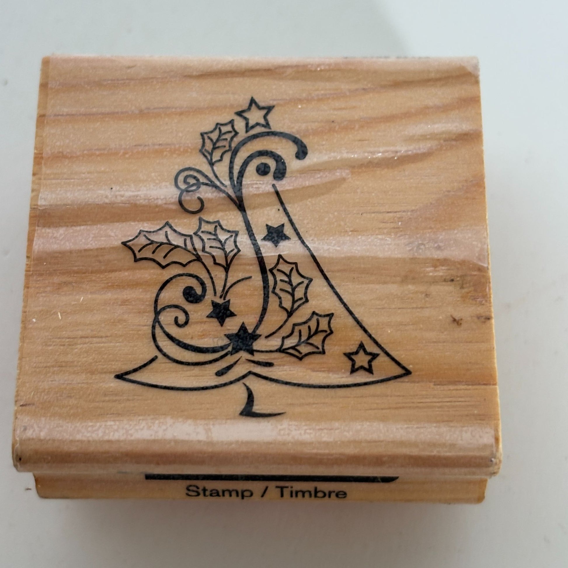 CraftSmart Wood Mounted Rubber Stamp Christmas Tree Holly Holiday Card Making