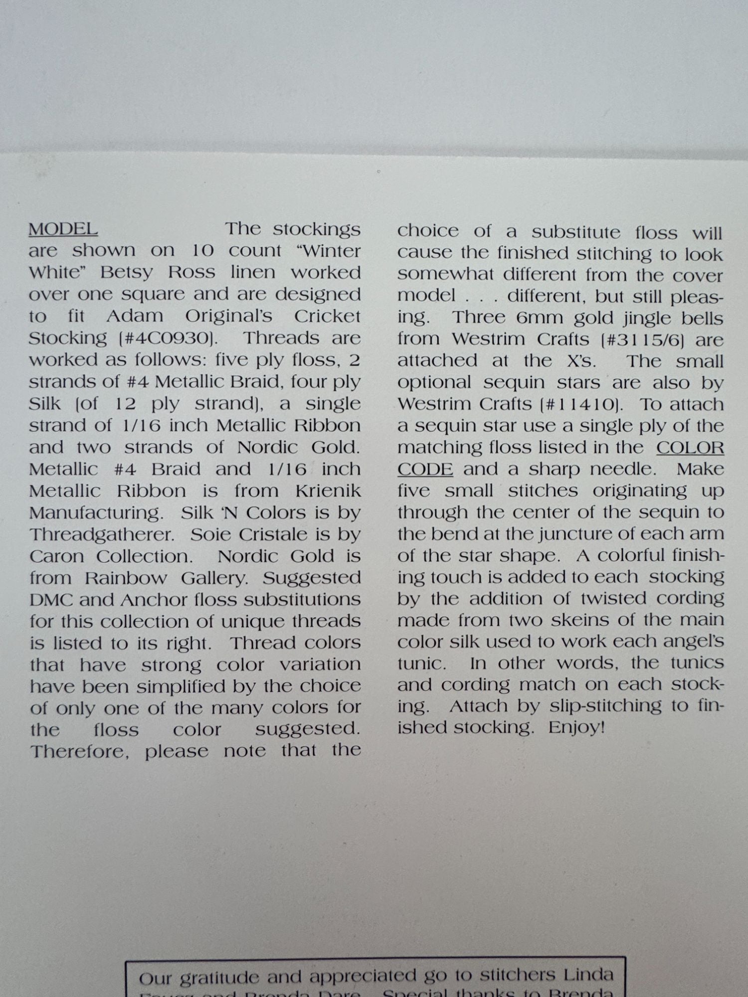 The Cross-Eyed Cricket Collection Cross Stitch Pattern: Stocking Angels I