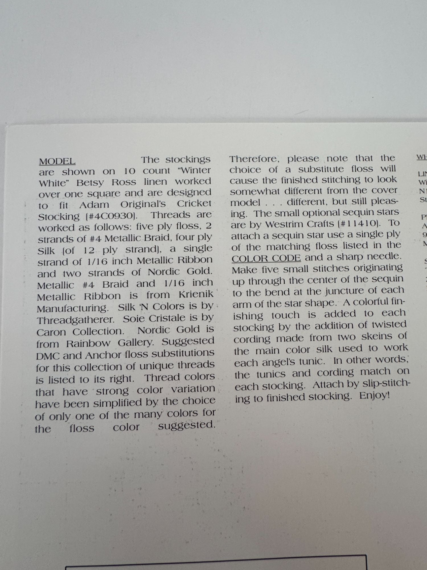 The Cross-Eyed Cricket Collection Cross Stitch Pattern: Stocking Angels II