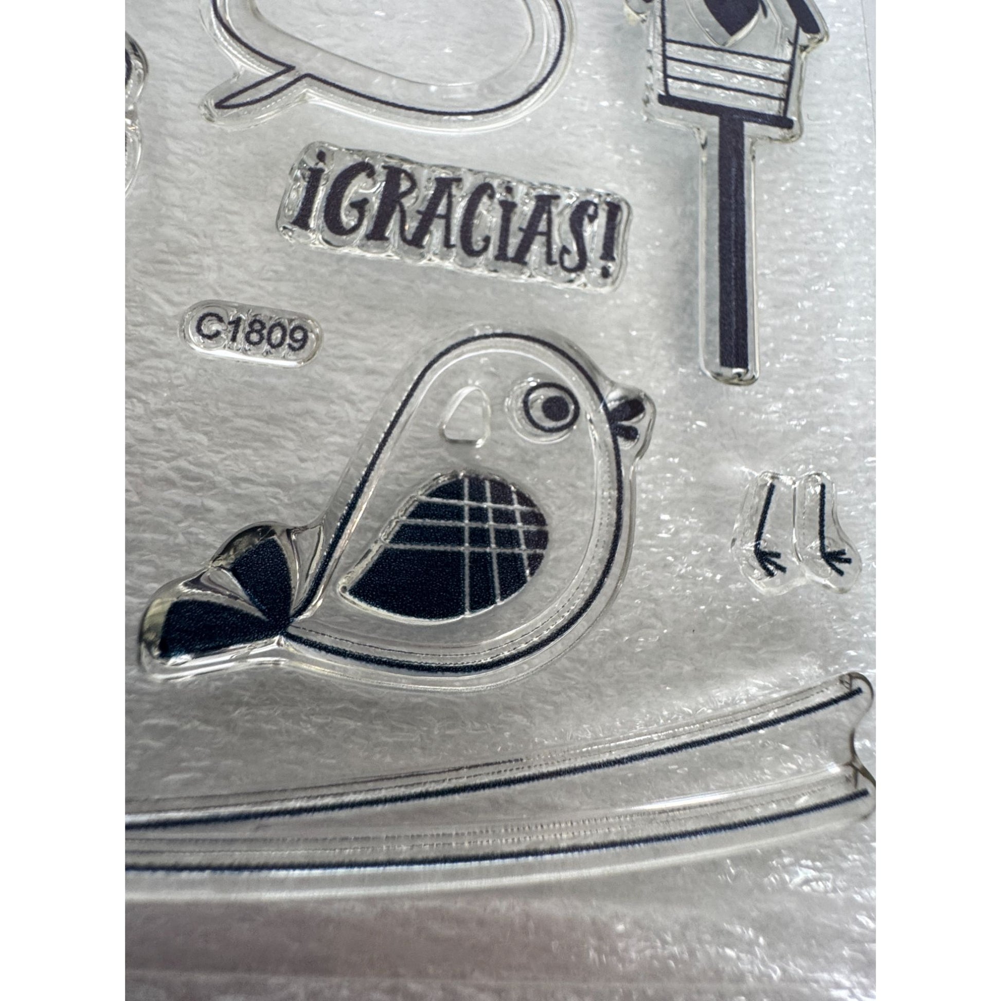 CTMH Acrylic Stamp Set Little Birdie Bird Thank You Hello Thought Bubble C1809