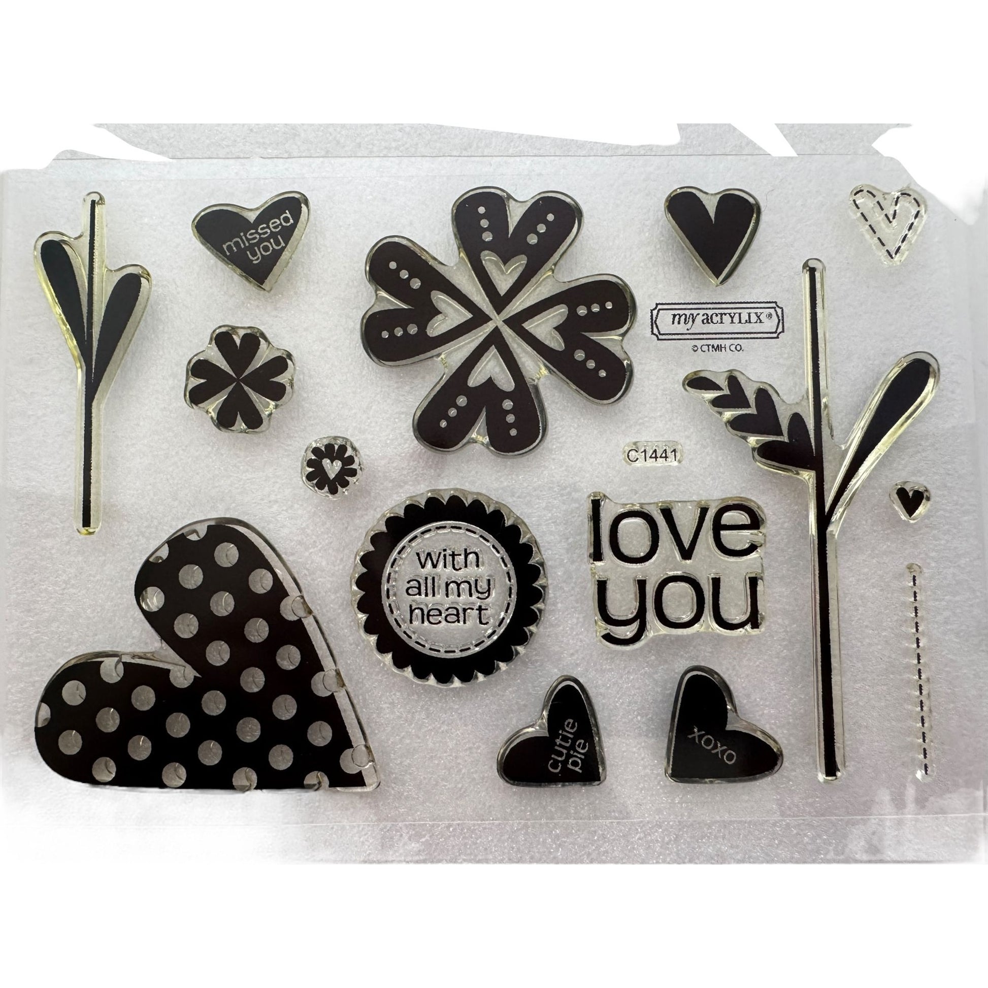CTMH My Acrylix Acrylic Stamp Set Affection Love You All My Heart Flower C1441