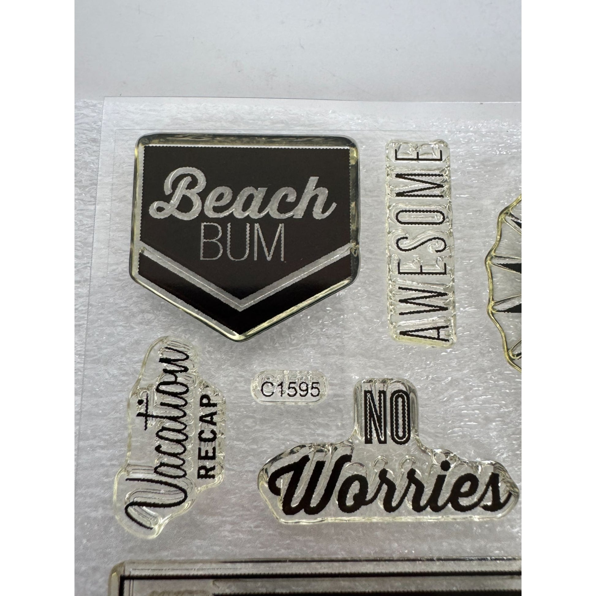 CTMH My Acrylix Acrylic Stamp Set Hello Summer No Worries Beach Bum Words C1595