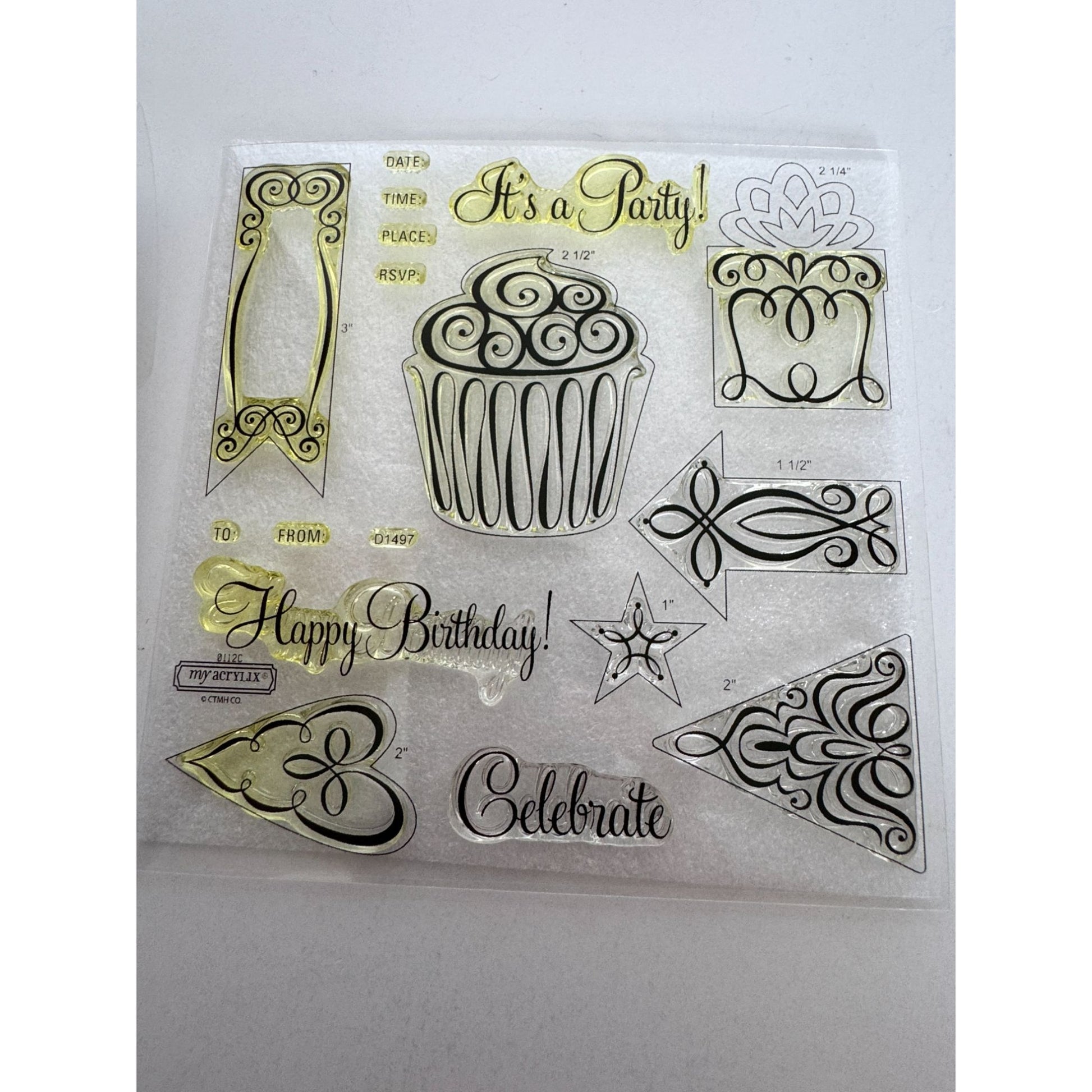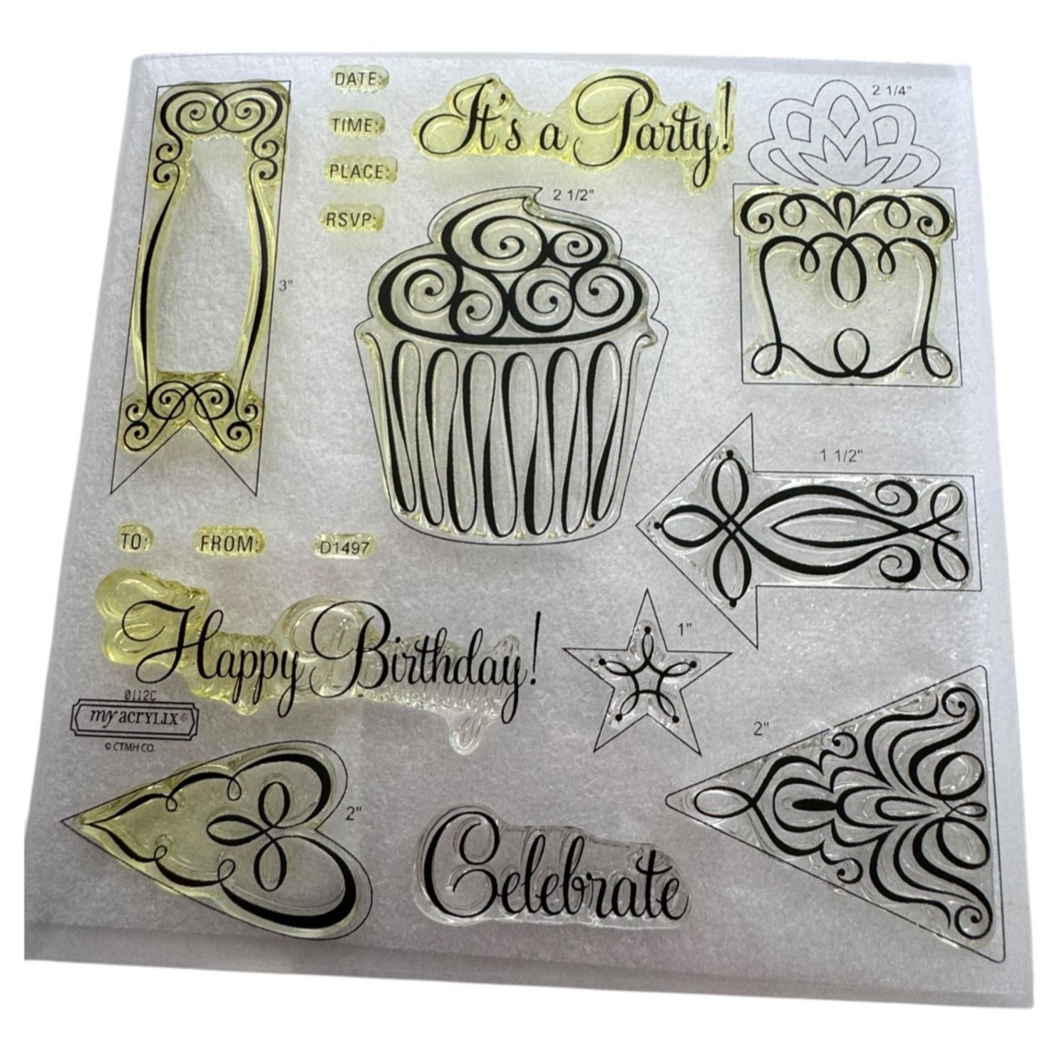 CTMH My Acrylix Acrylic Stamp Set Its a party Birthday Cupcake Invitation RSVP