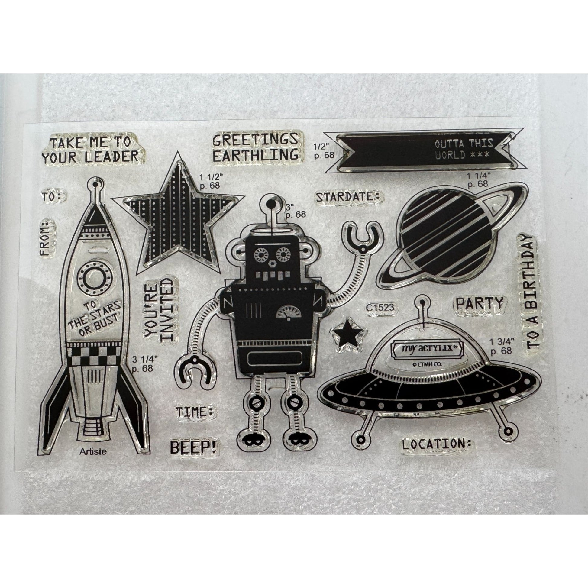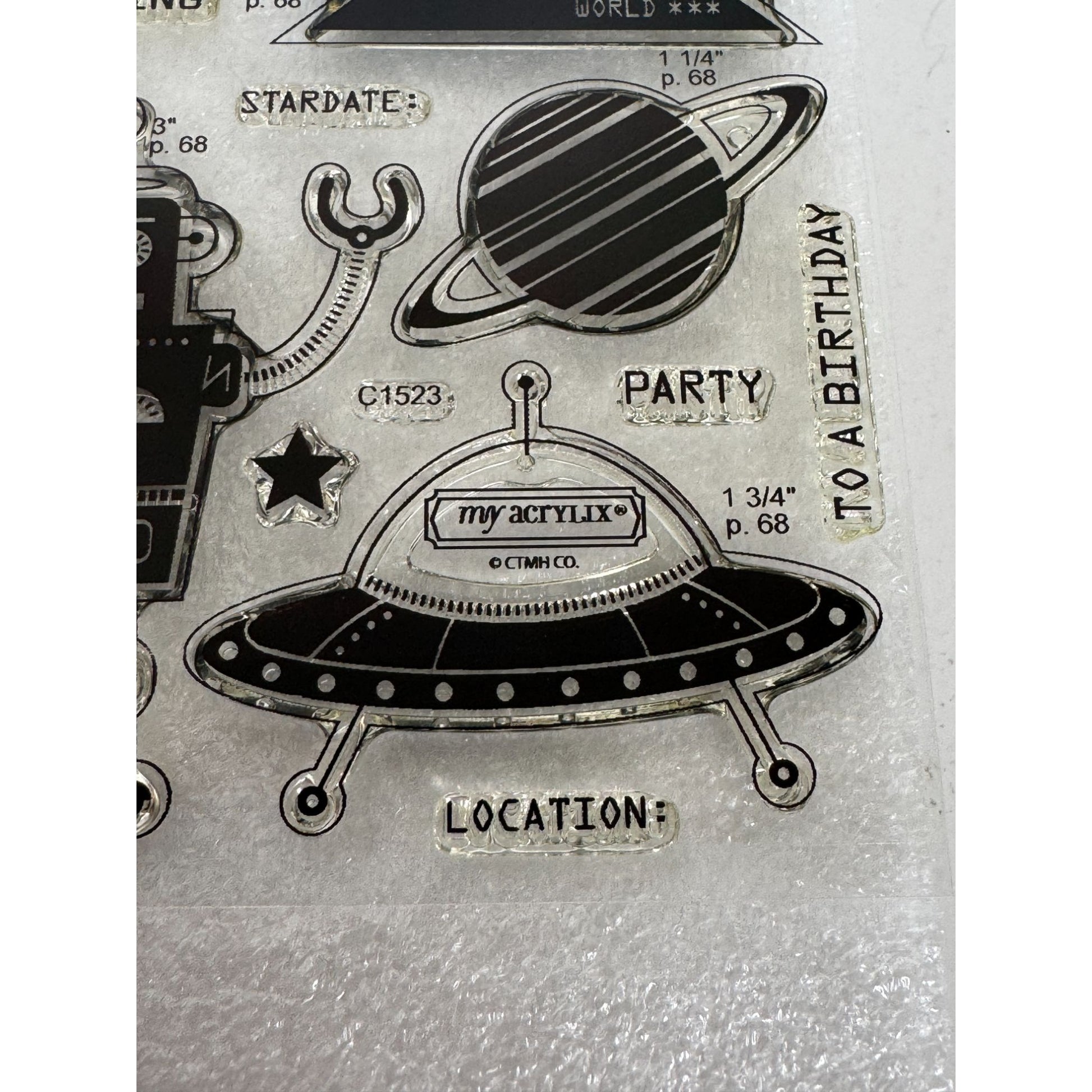 CTMH My Acrylix Acrylic Stamp Set Outta This World Robot Rocket Alien Ship C1523