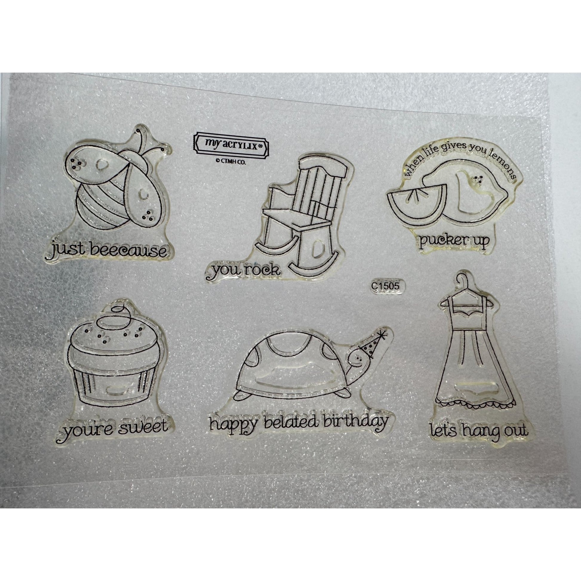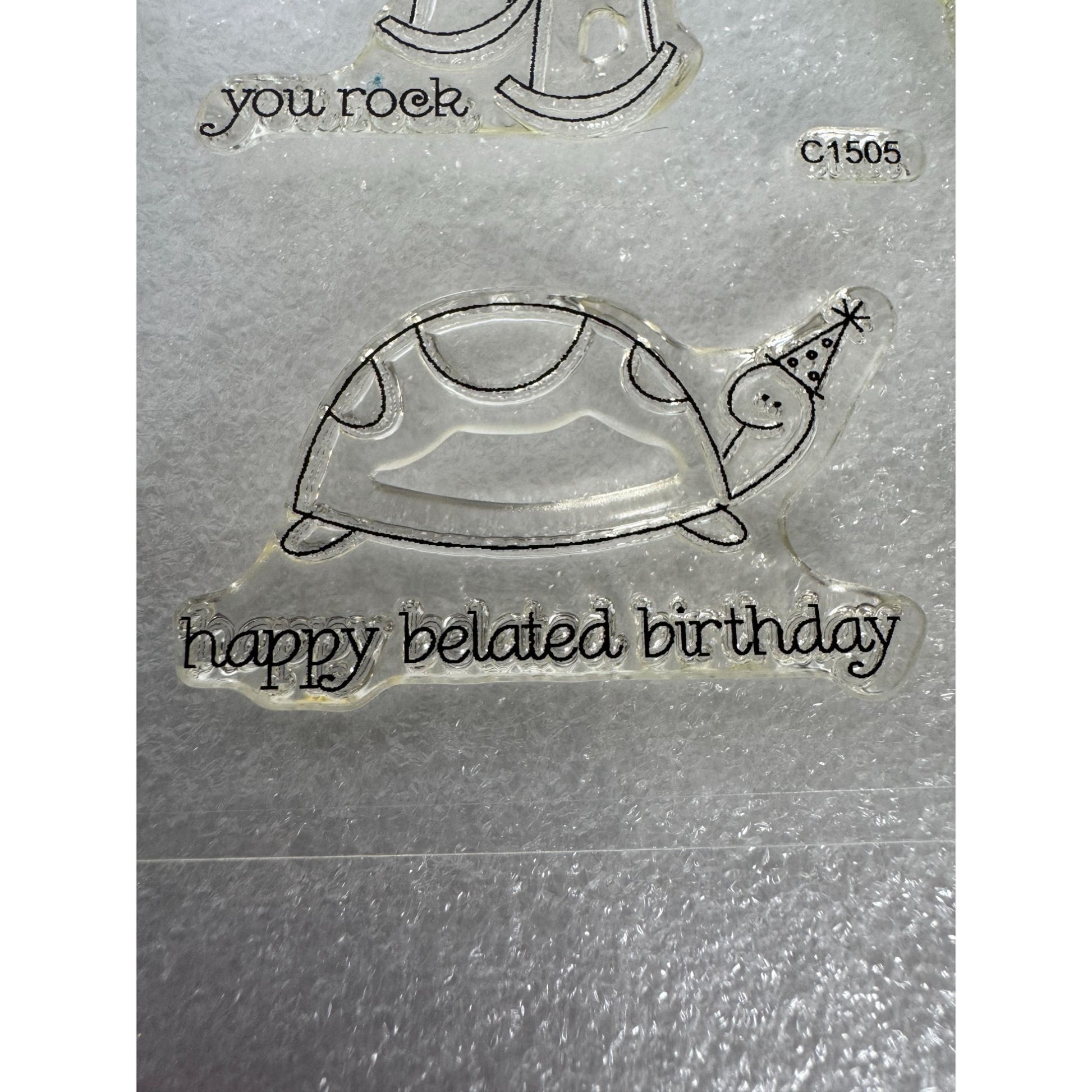 CTMH My Acrylix Acrylic Stamp Set Pun Fun Funny Belated Birthday Turtle Bee Cake