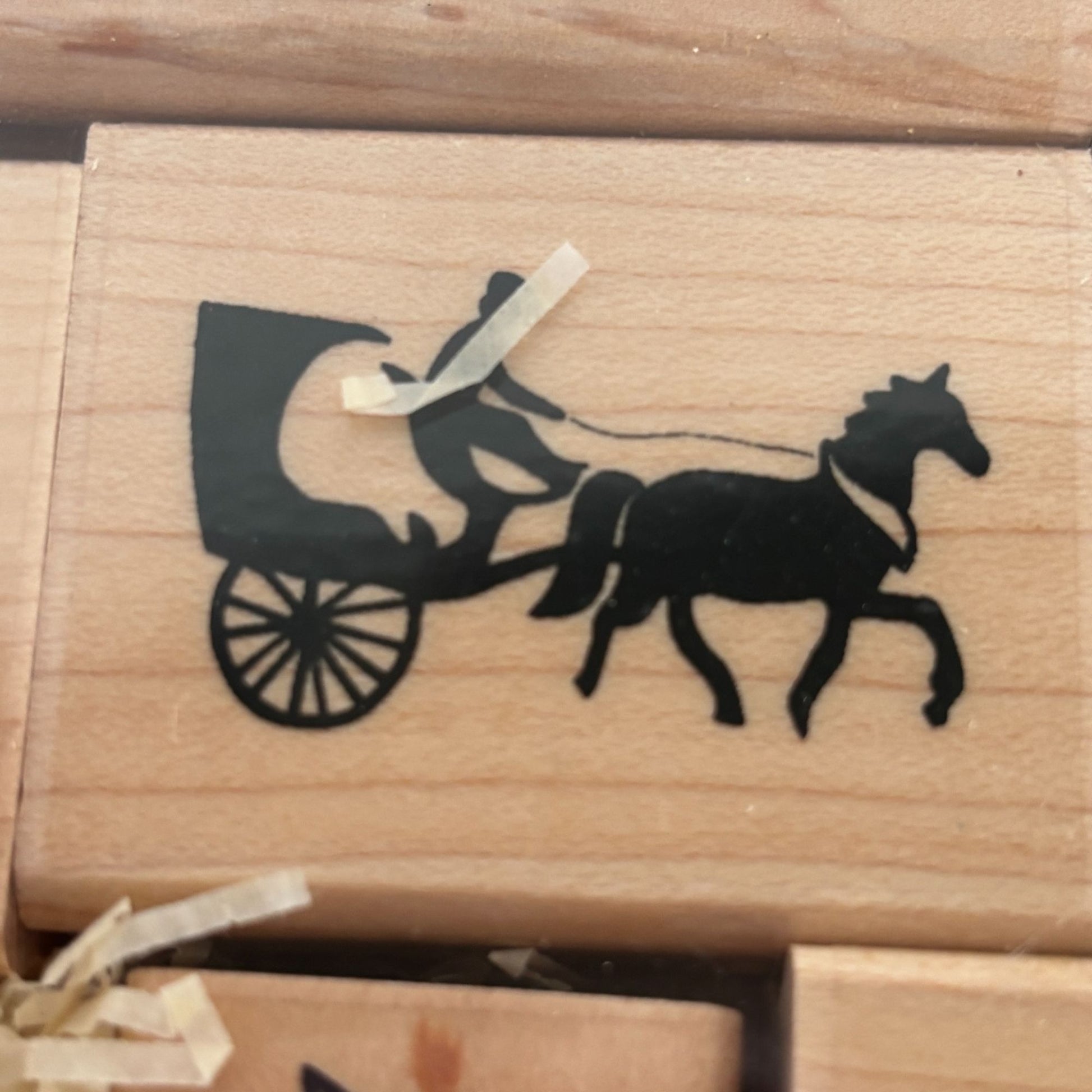 CTMH Wood Rubber Stamp Set Horse Buggy Silhouette Deer Christmas Tree Snowflake