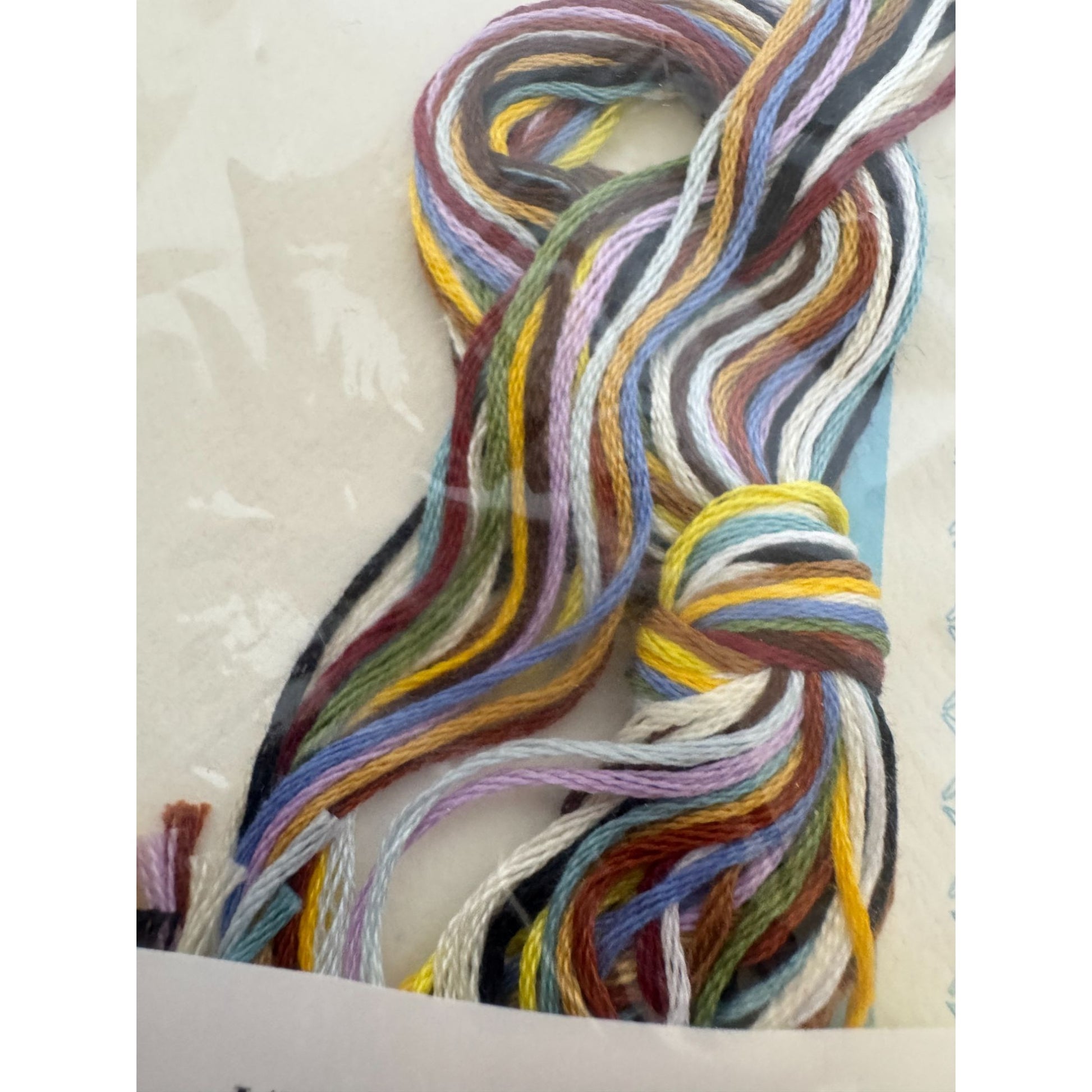 This kit includes embroidery floss, card, envelope, needle, 100% cotton #18 Aida.