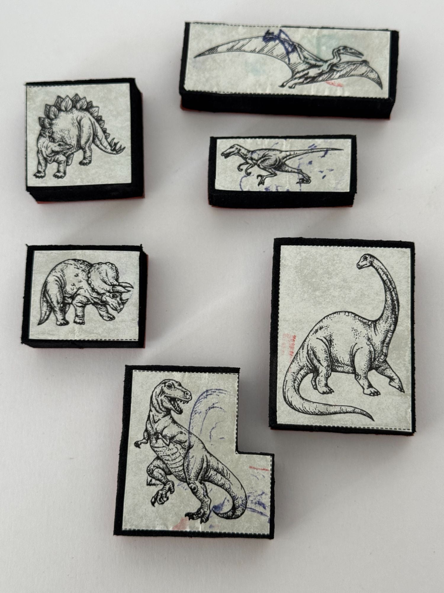Dinosaur Foam Rubber Stamp Set Triceratops Stegosaurus Kids Birthday Card Making