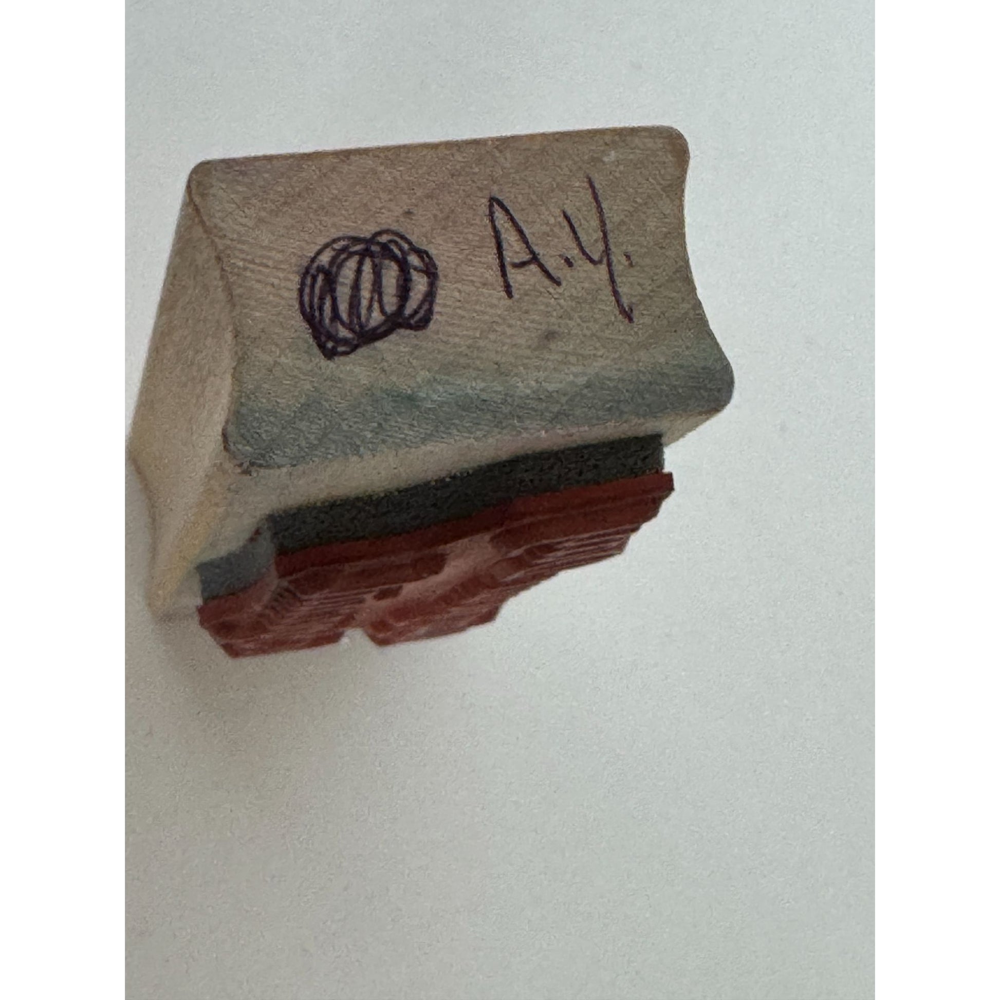 • Ink stains on wood mount. Clean rubber.
