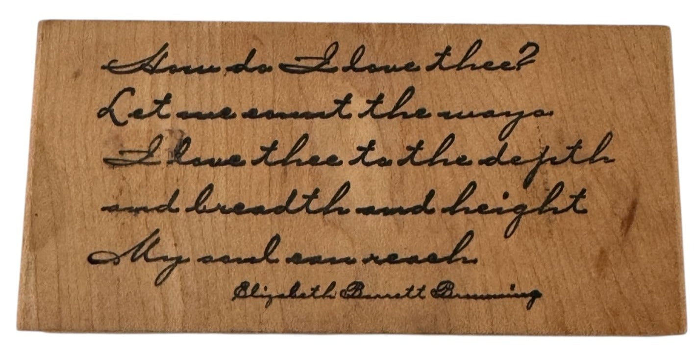 • Stamp reads "How do I love thee? Let me count the ways I love thee to the depth and breadth and height my soul can reach"