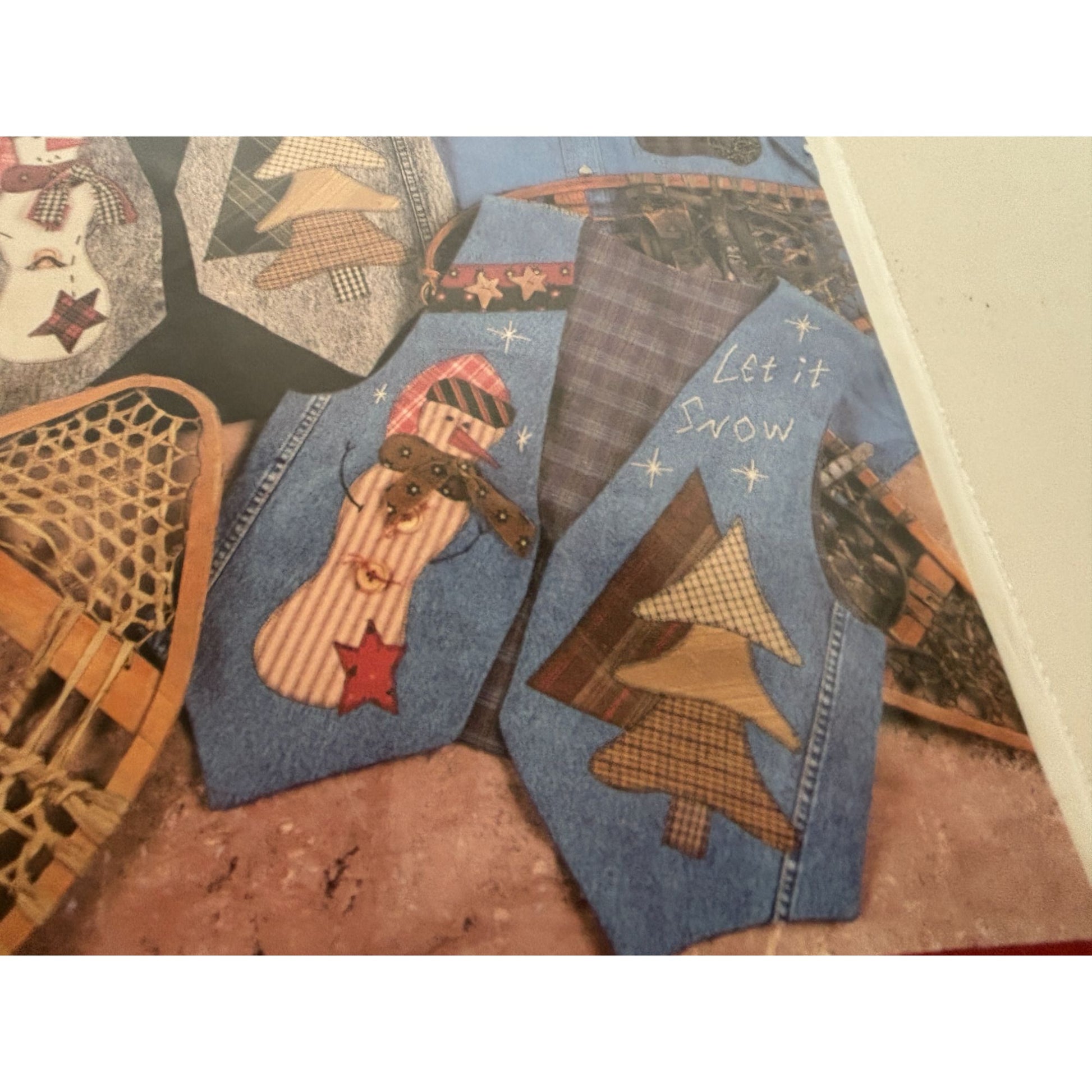 • Also includes patterns for snowman and tree appliques that can be added to a denim shirt