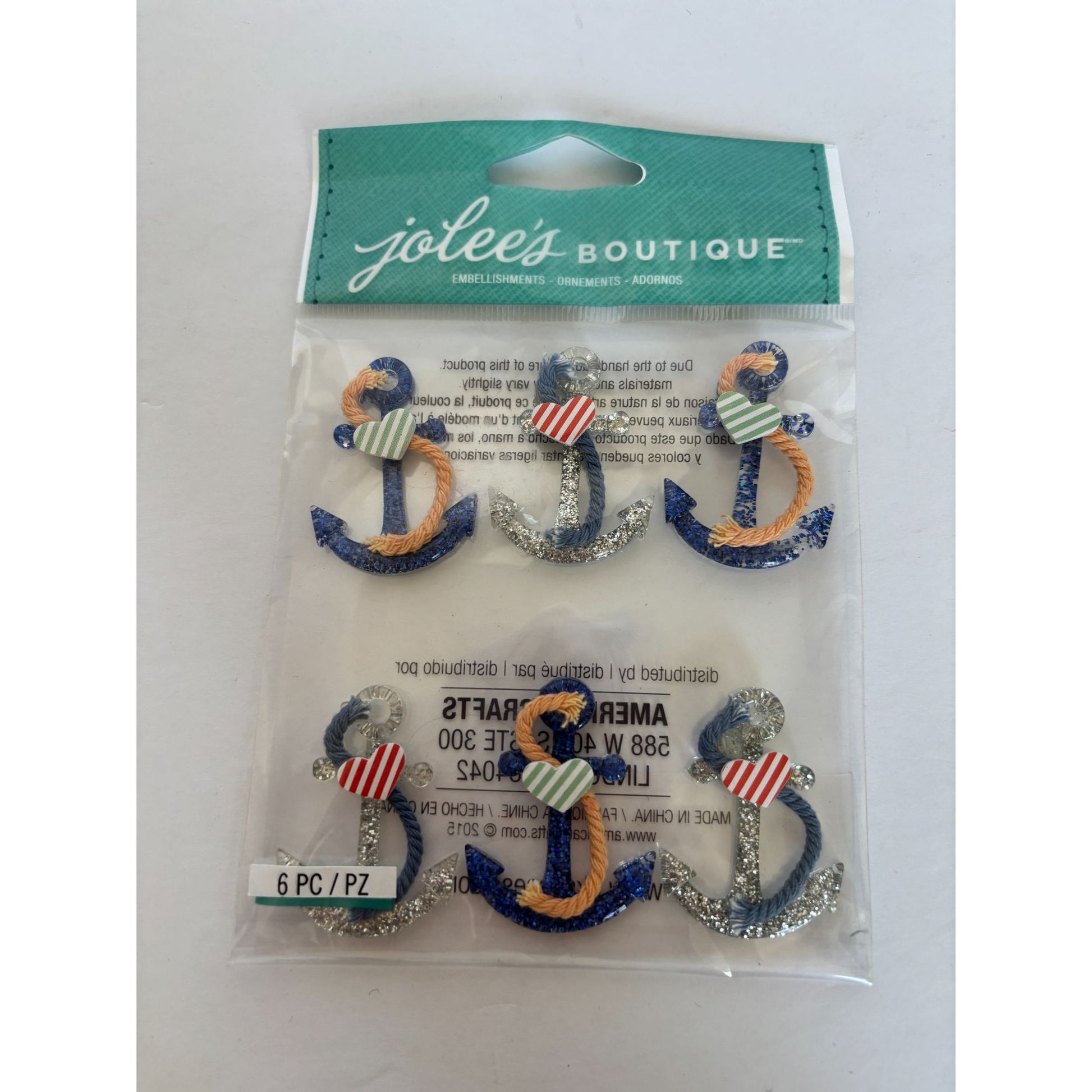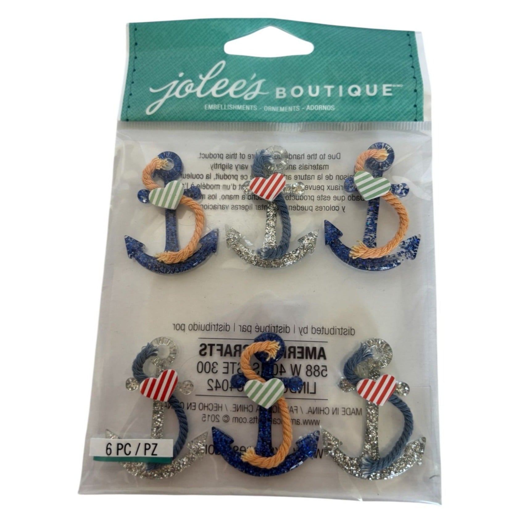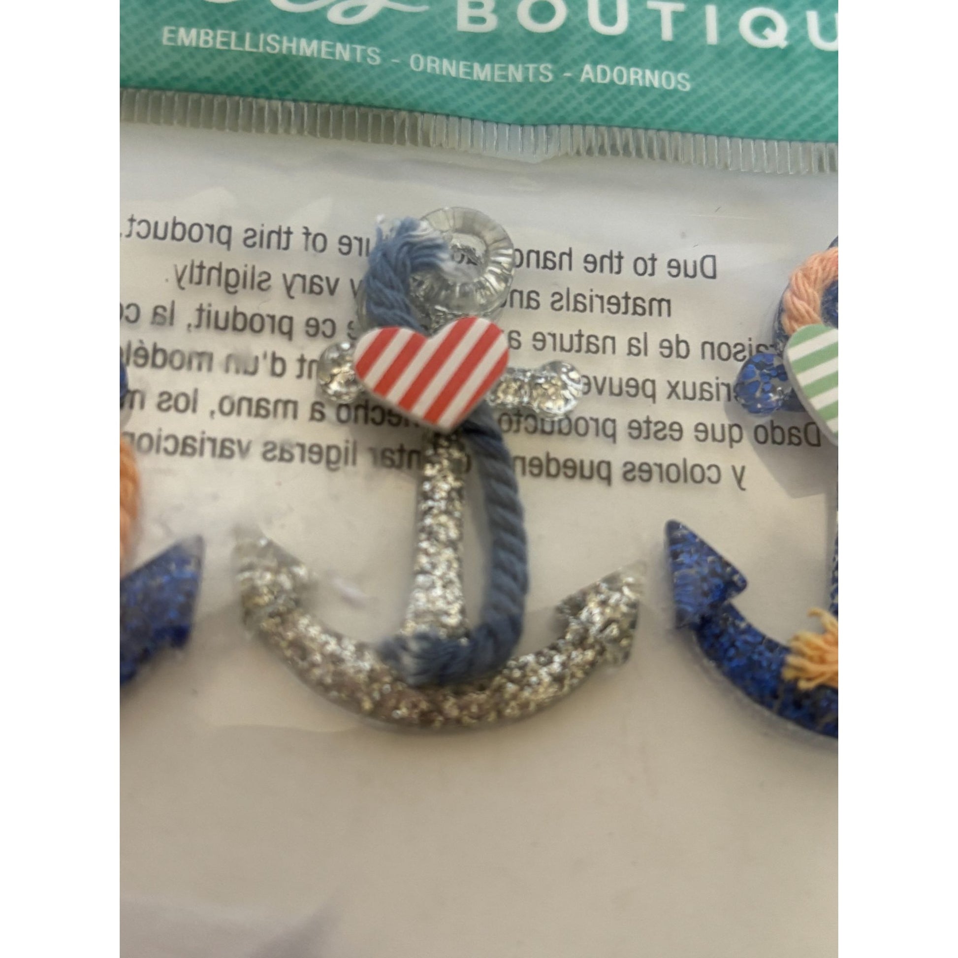 Jolees Boutique Nautical Anchors Repeat Embellishments Glitter Rope Accents 6 Pc