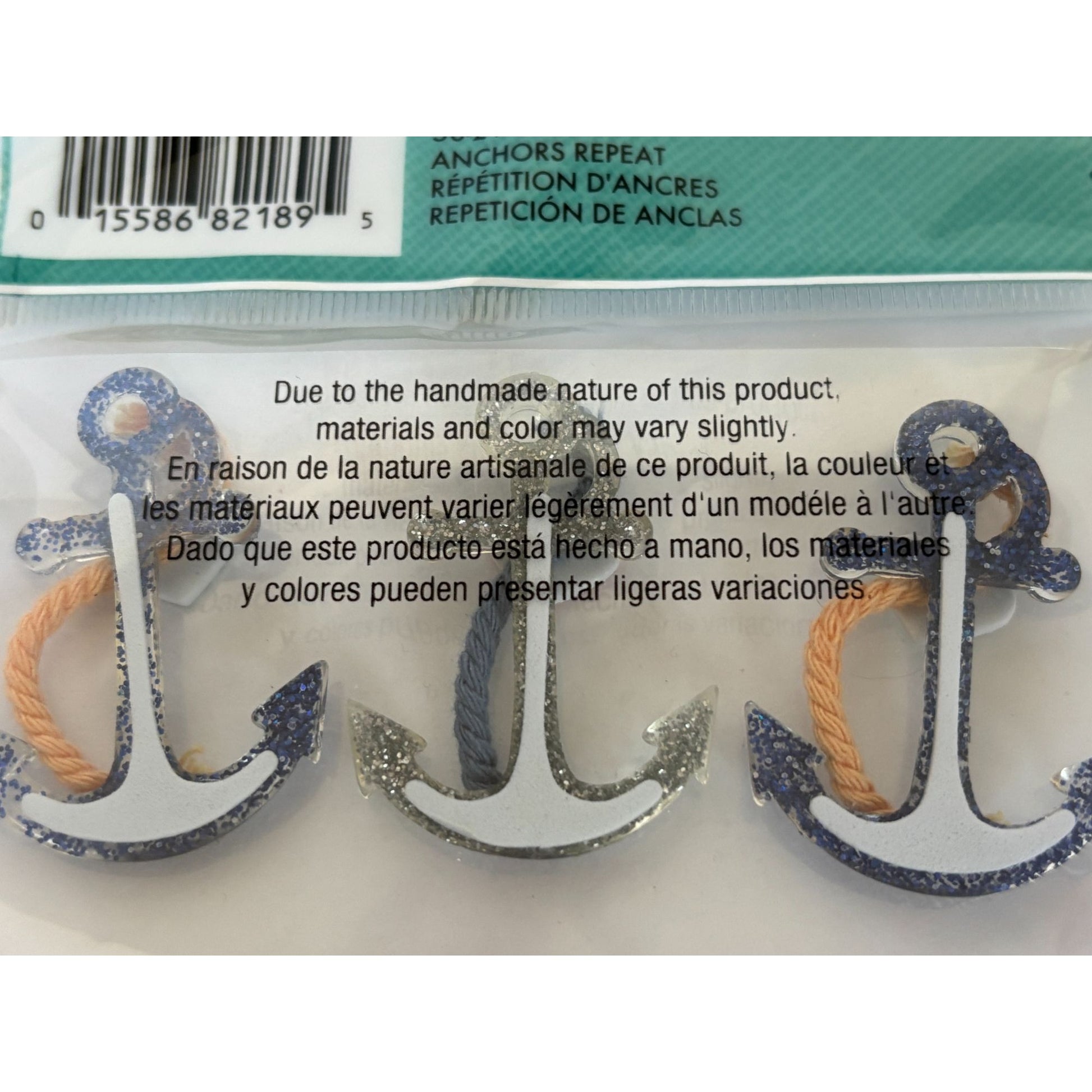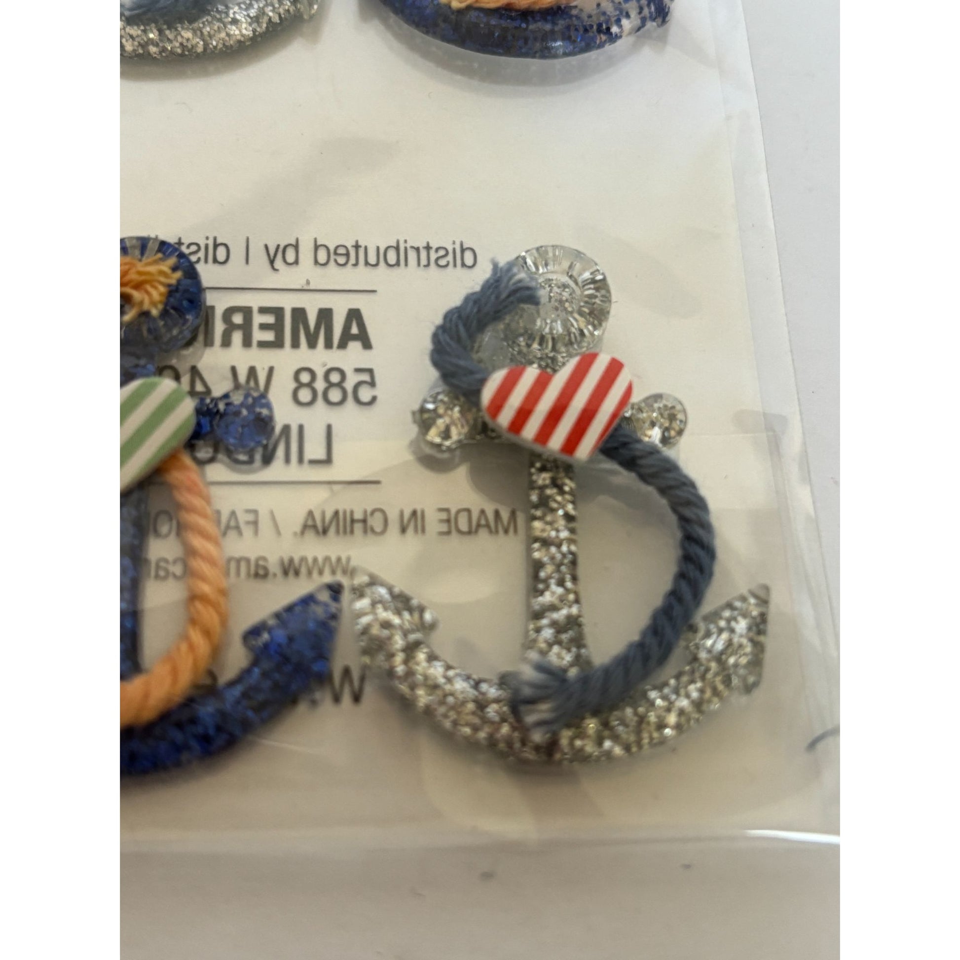 • Glitter-coated anchors with rope details