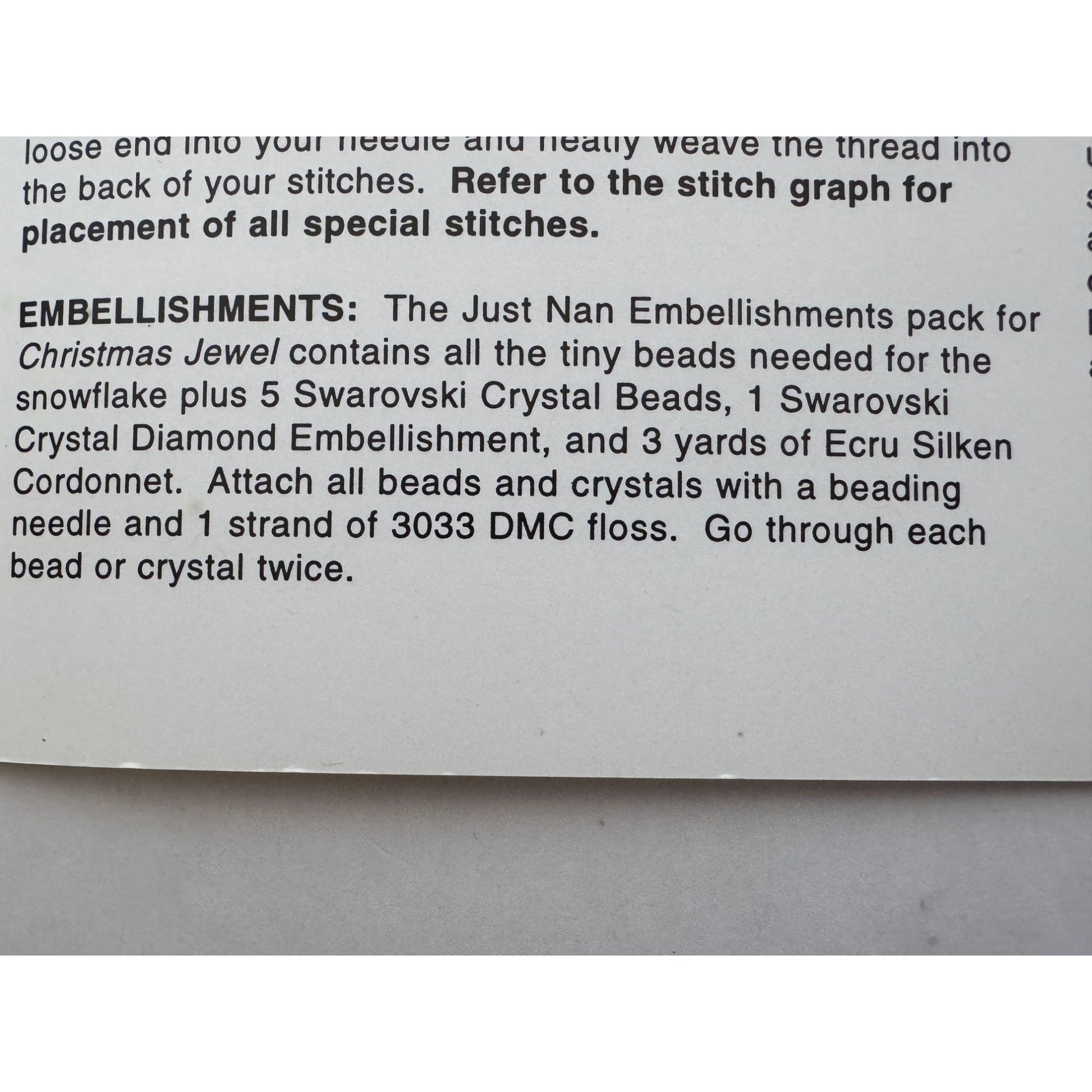 Just Nan Cross Stitch Pattern Christmas Jewel Snowflakes Beads Swarovski Crystal