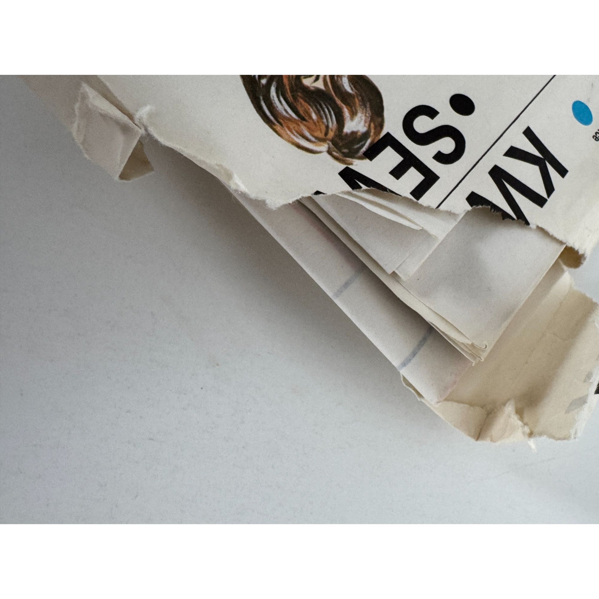 • Uncut. The envelope has writing and is torn, with visible wear and creases on the corners and edges.