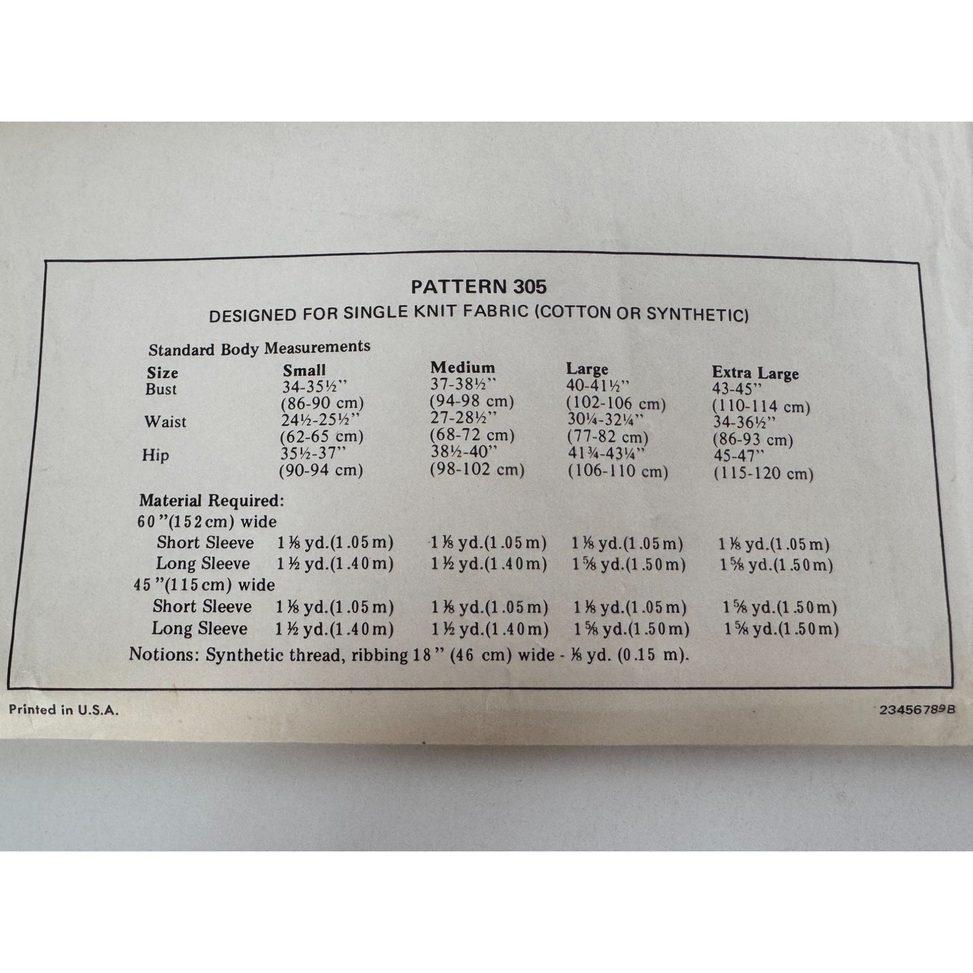 Kwik Sew Sewing Pattern 305: Ladies' T-Shirt