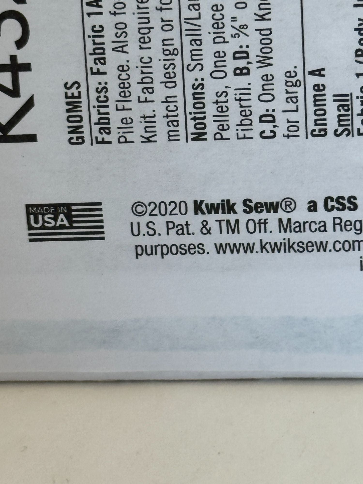 Kwik Sew Sewing Pattern K4322: Gnomes