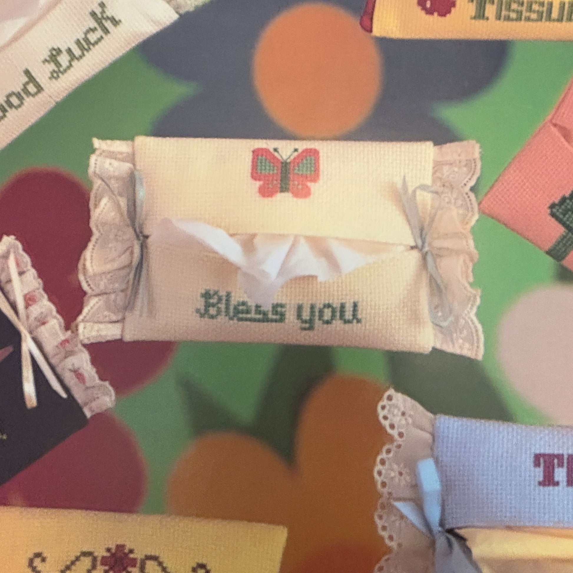 This cross stitch leaflet offers instructions for creating purse size tissue covers. Featuring a variety of designs and messages, it provides a creative outlet for cross stitch enthusiasts looking to craft unique and portable tissue holders. This guide is suitable for all skill levels and includes detailed instructions.