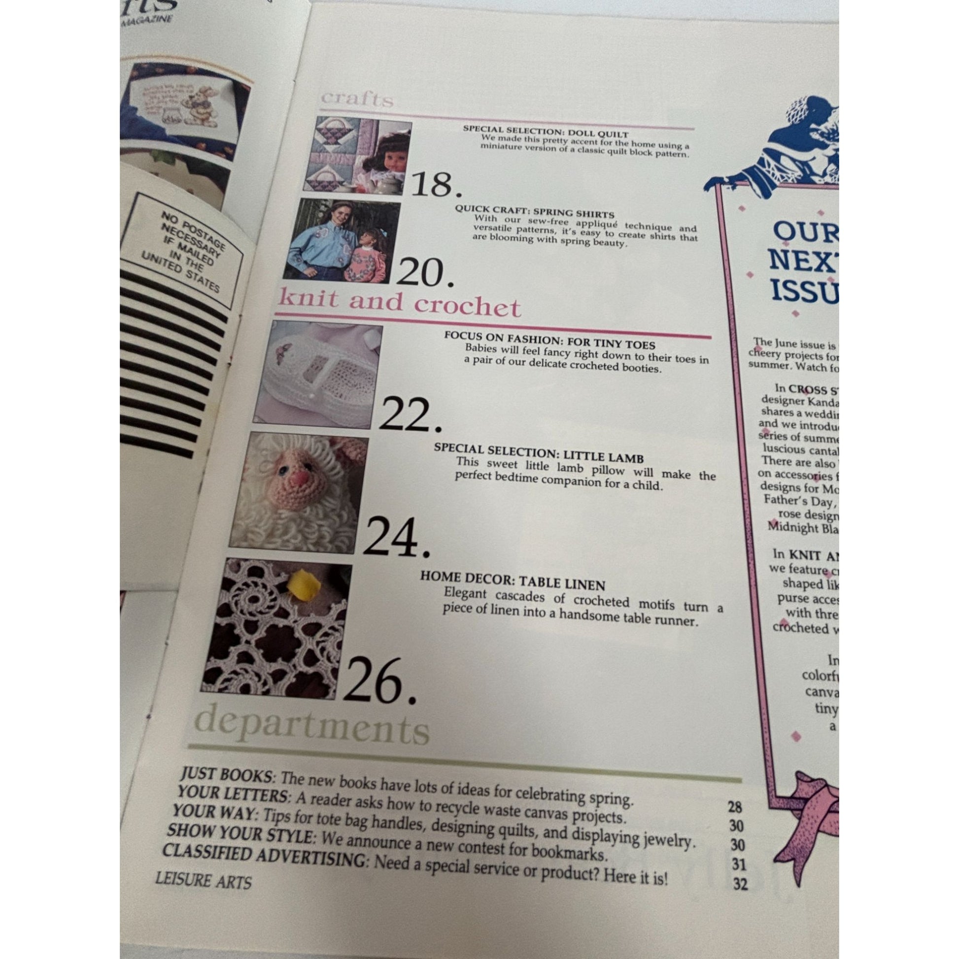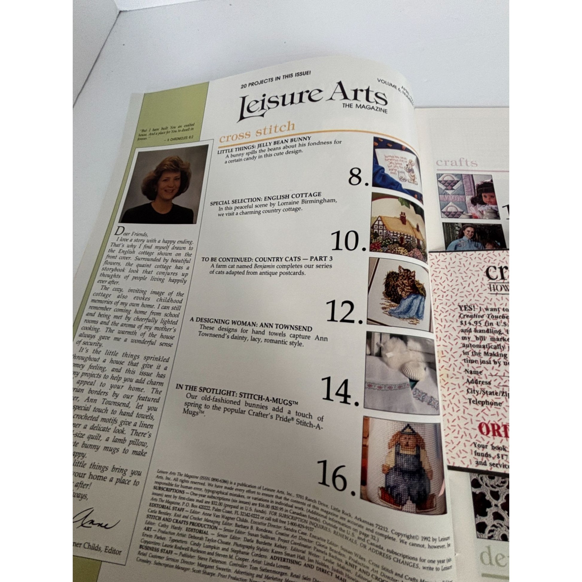 Leisure Arts Magazine April 1992 Cross Stitch Crochet Knit Cat Jelly Beans Quilt
