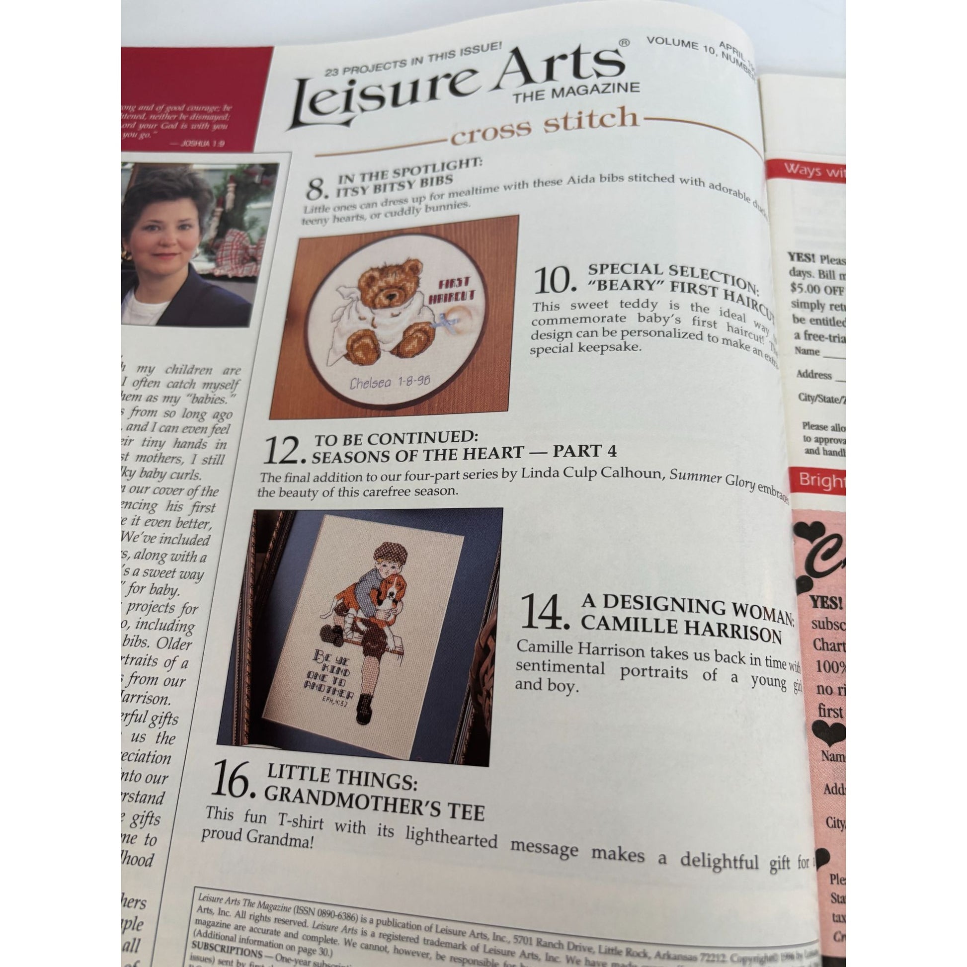Leisure Arts Magazine April 1996 Cross Stitch Knitting Crochet Homespun Wreaths