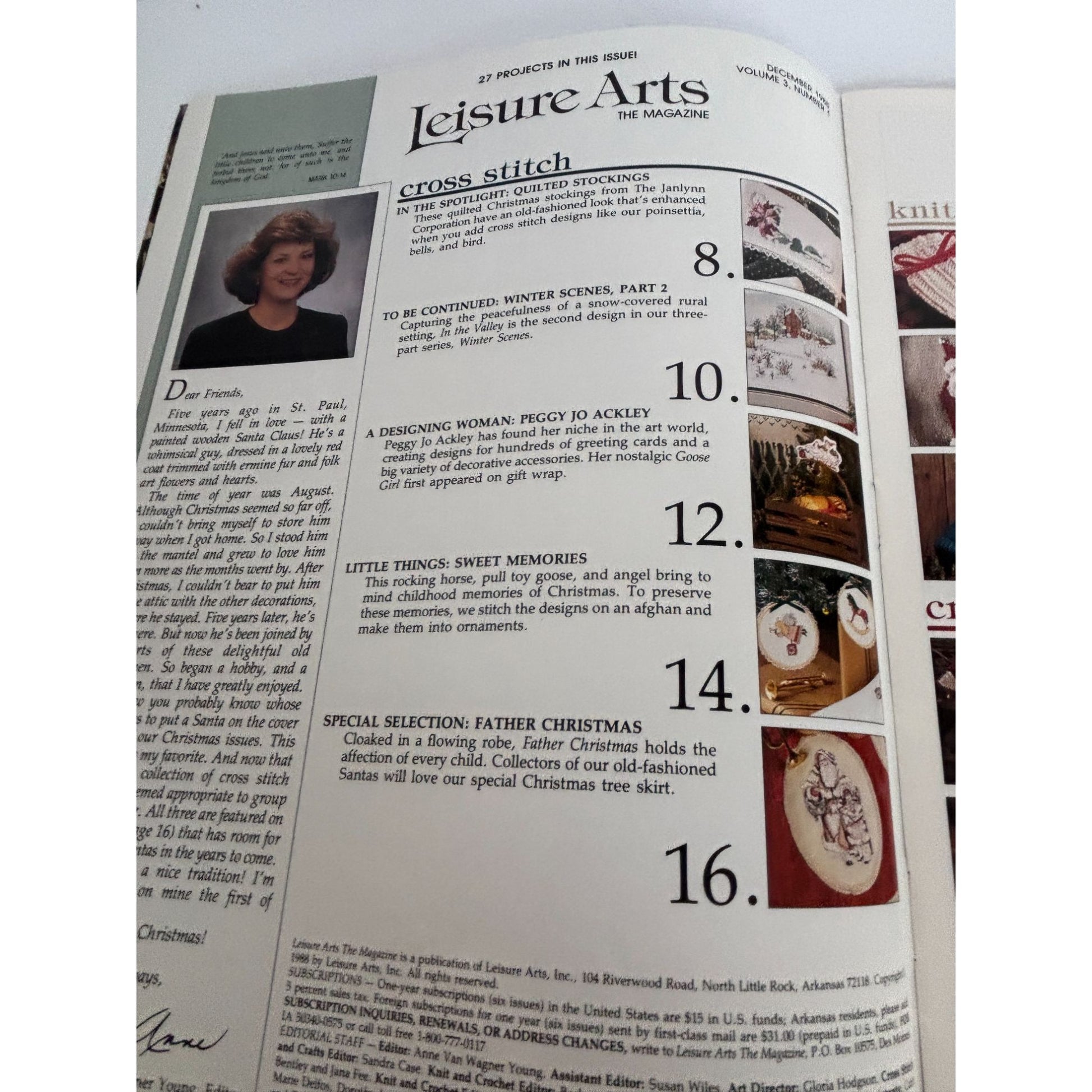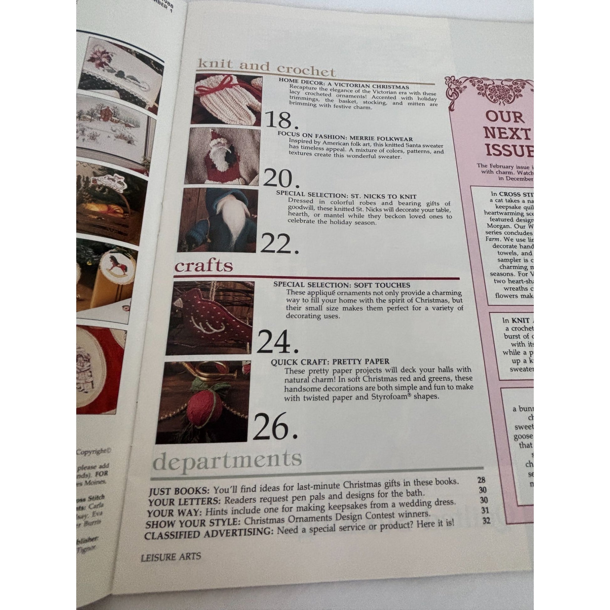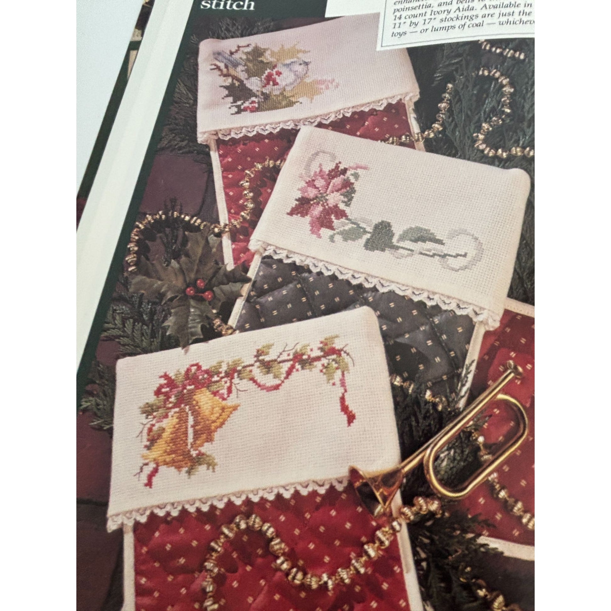 Leisure Arts Magazine December 1988 Cross Stitch Santa Christmas Stockings Knit