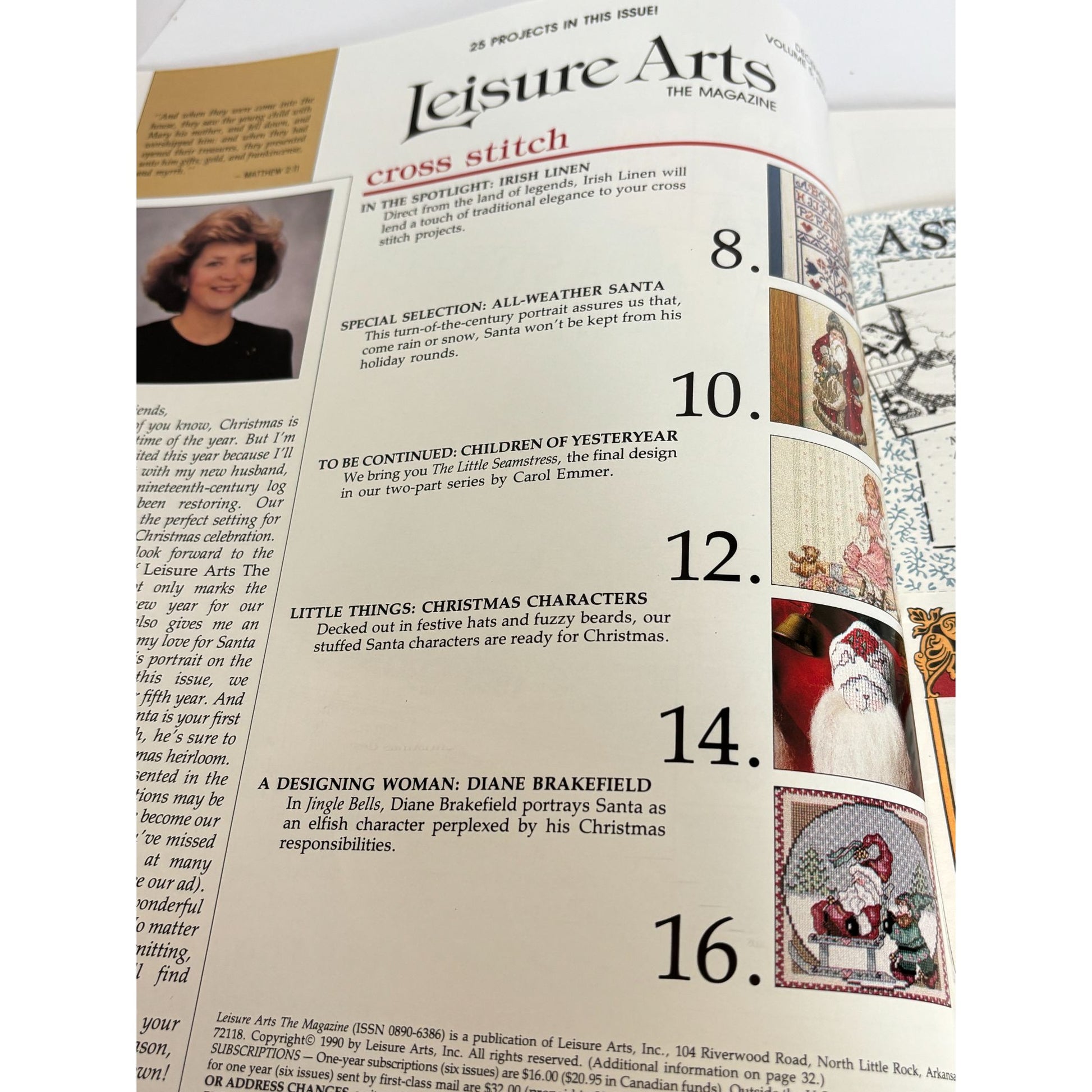 Leisure Arts Magazine December 1990 Cross Stitch Craft Patterns Christmas Santa