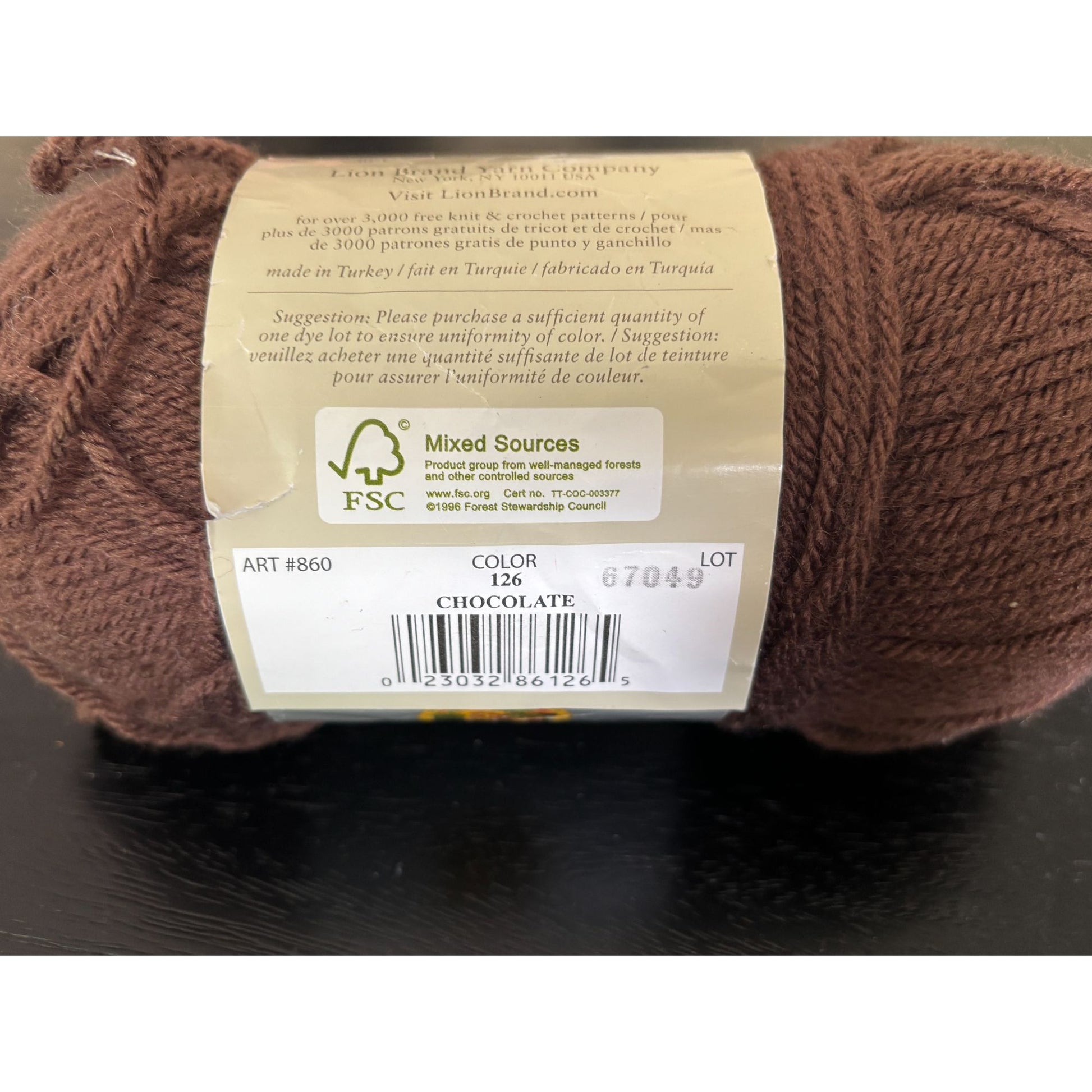 Lion Brand Vannas Choice Yarn Skein Chocolate Brown Medium Weight Acrylic 3.5 Oz