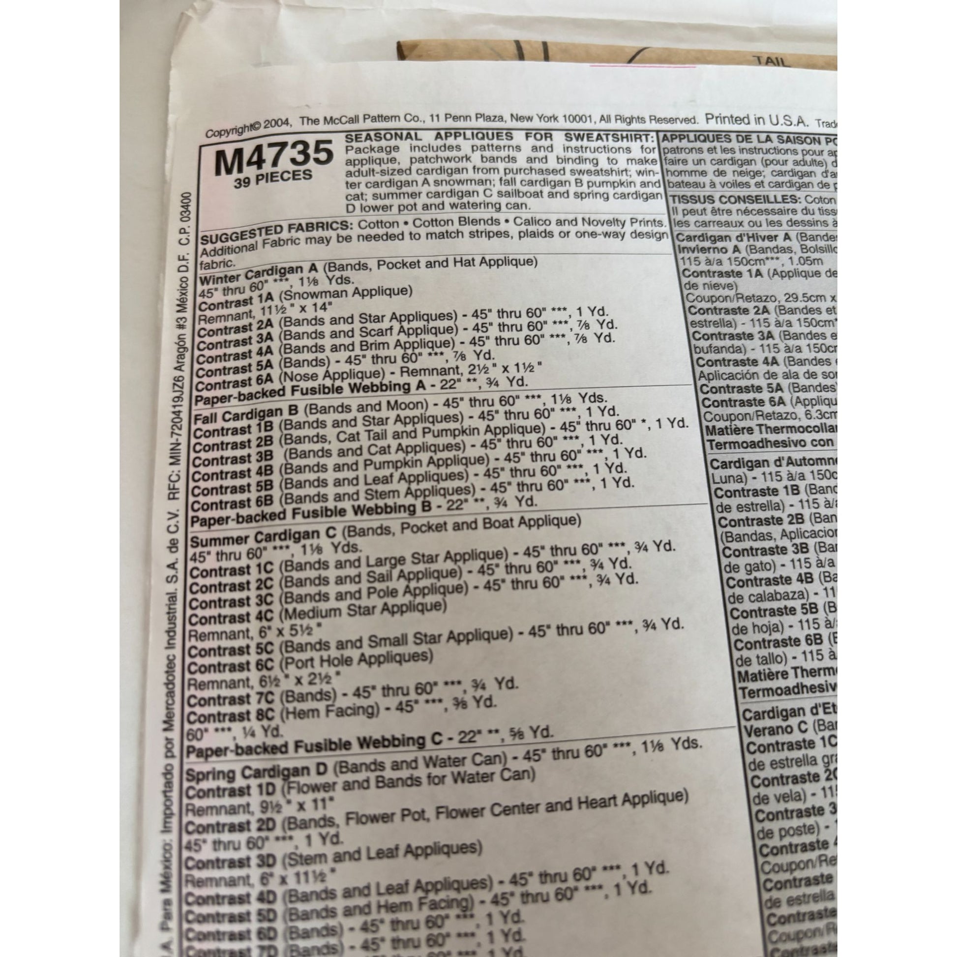 McCall's Sewing Pattern M4735: Season Appliques for Sweatshert