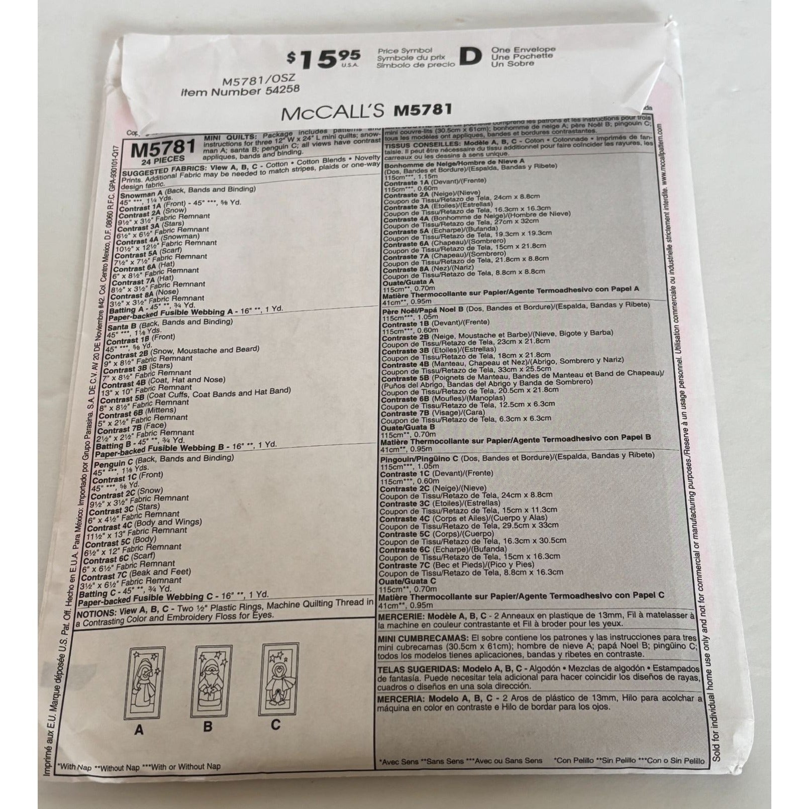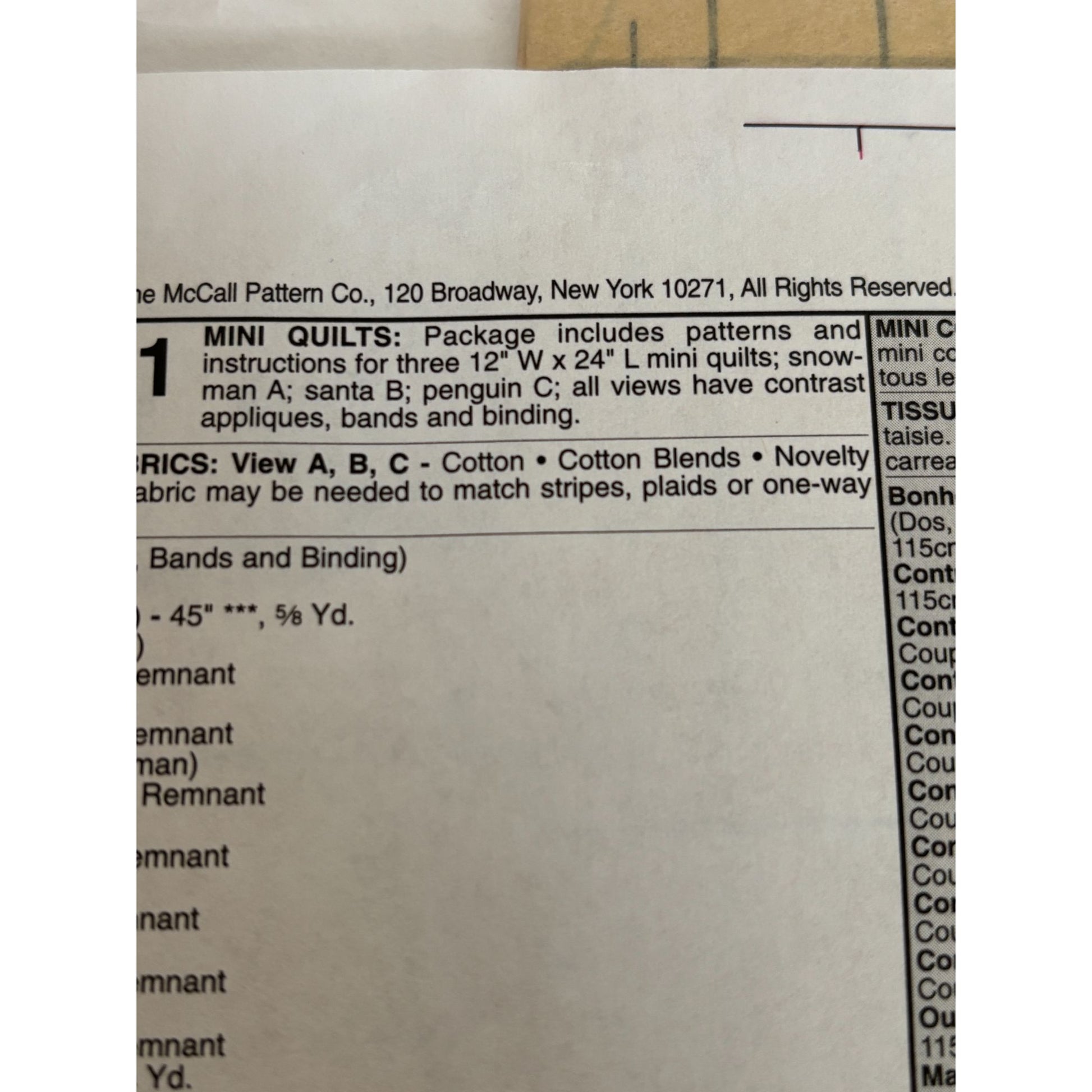 McCalls Crafts Pattern M5781 Mini Quilt Christmas Snowman Penguin Santa Holidays