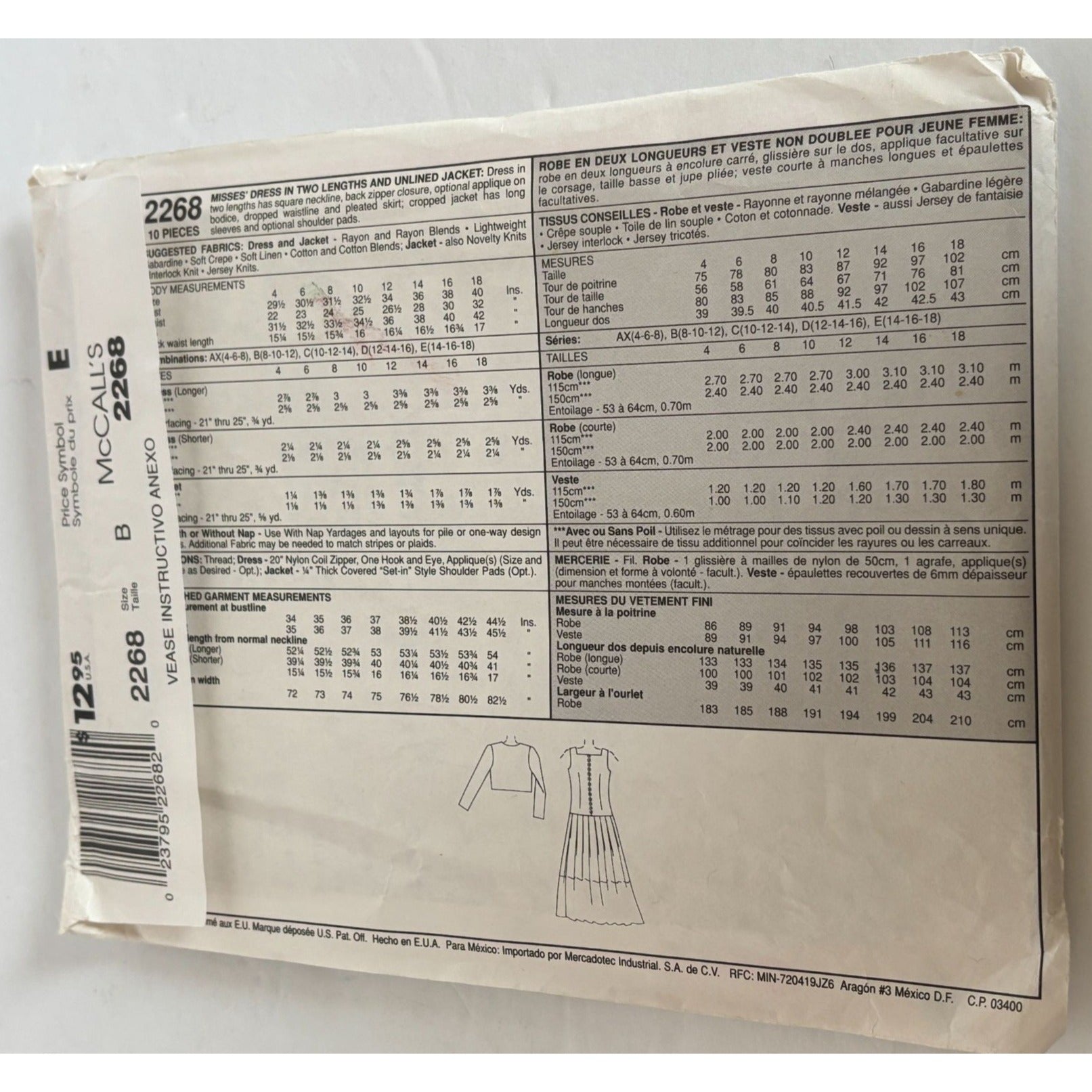 McCall's Sewing Pattern 2268: Misses' Dress in Two Lengths and Unlined Jacket