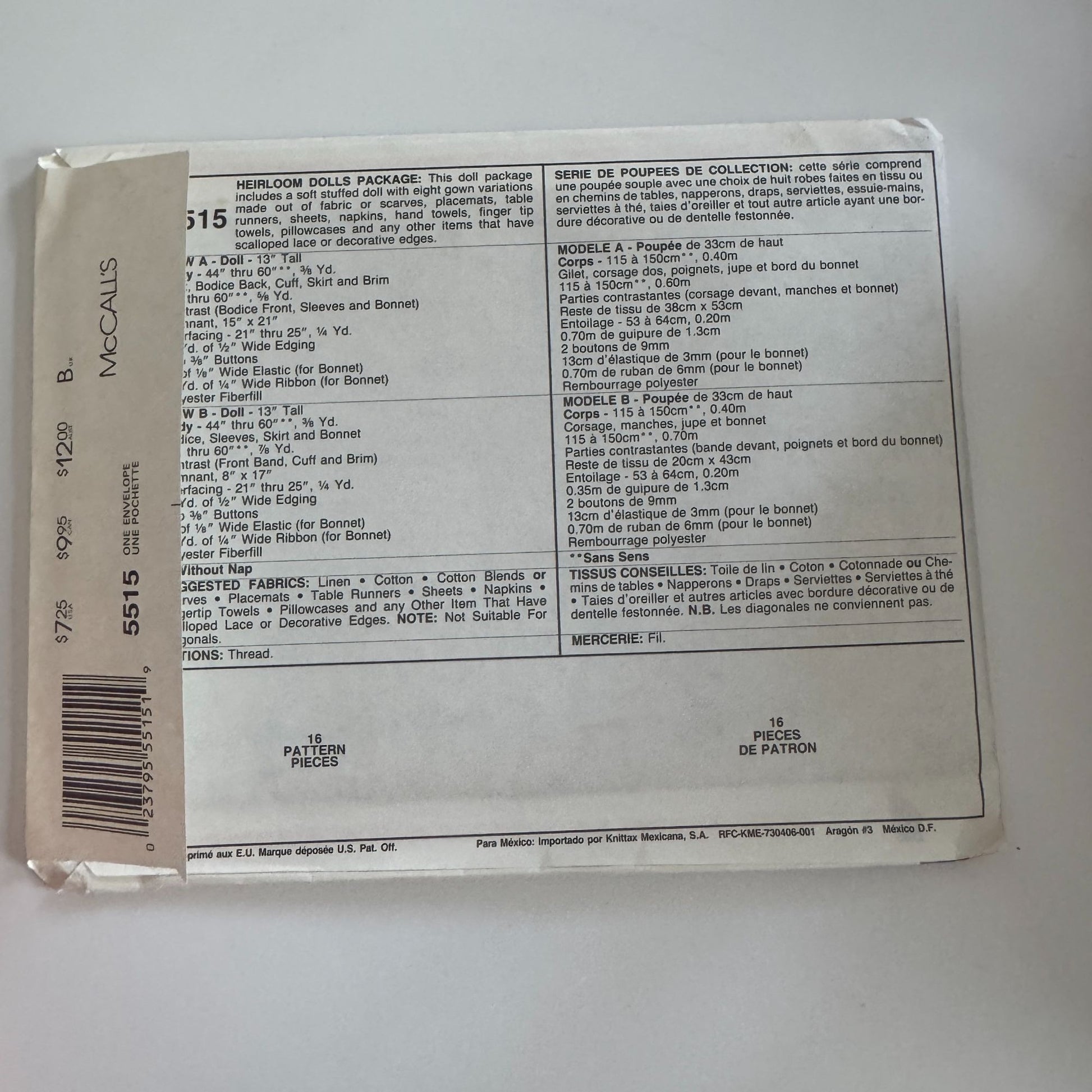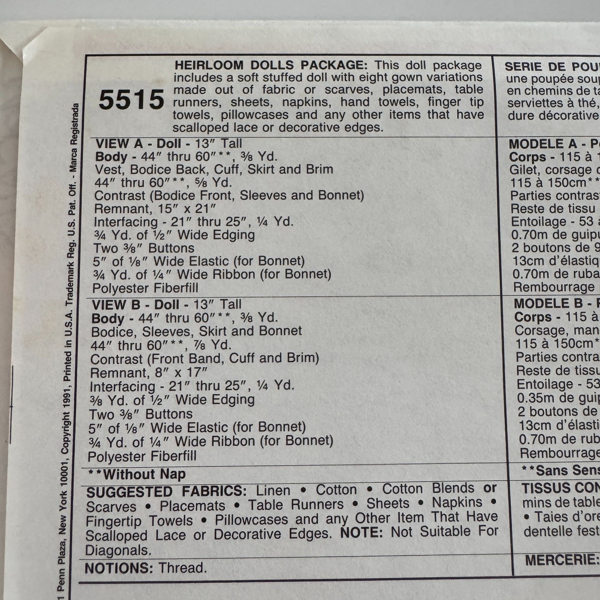 McCall's Sewing Pattern 5515: American Heirloom Dolls