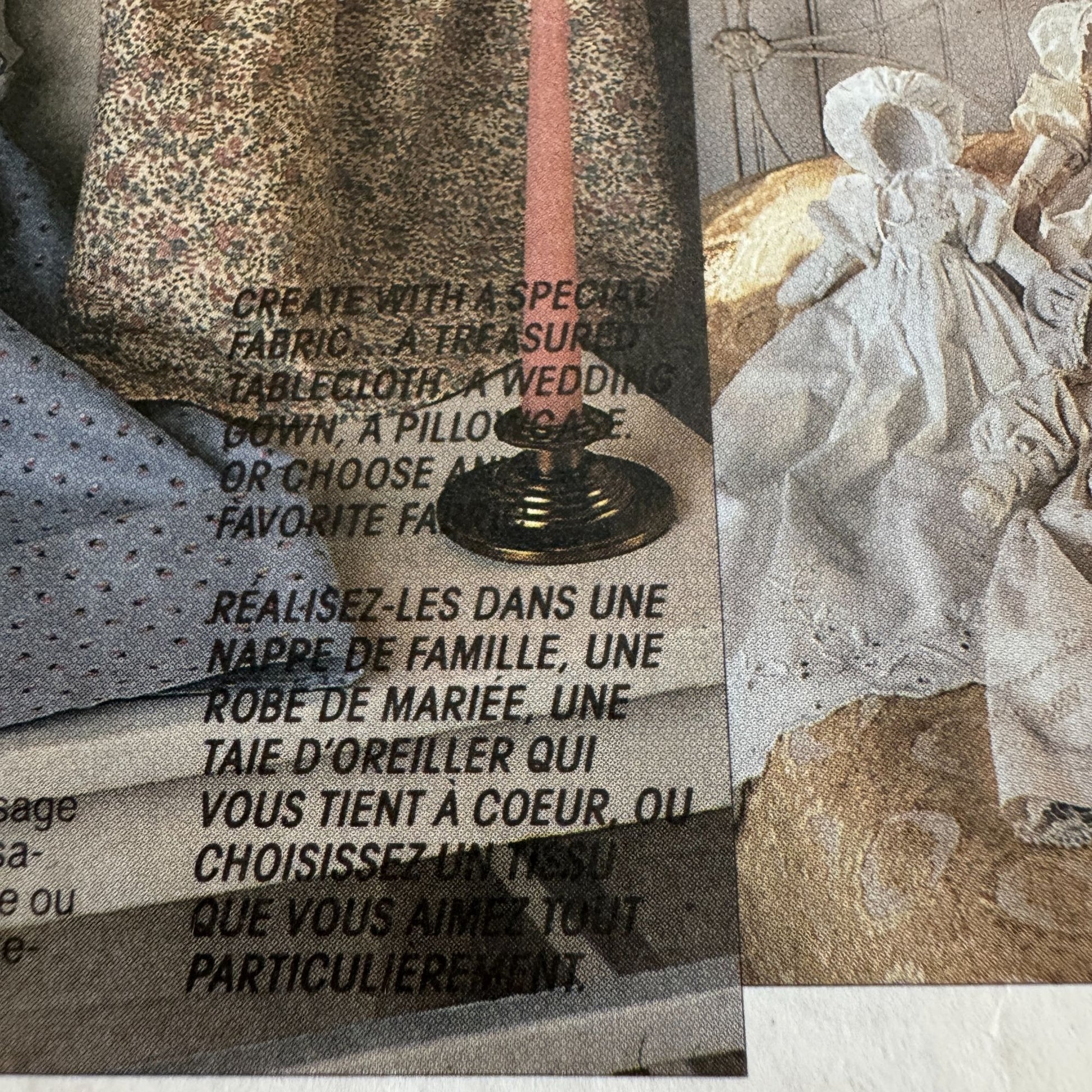 Create with a special fabric, a treasured tablecloth, wedding gown, pillowcase or choose another favorite fabric.