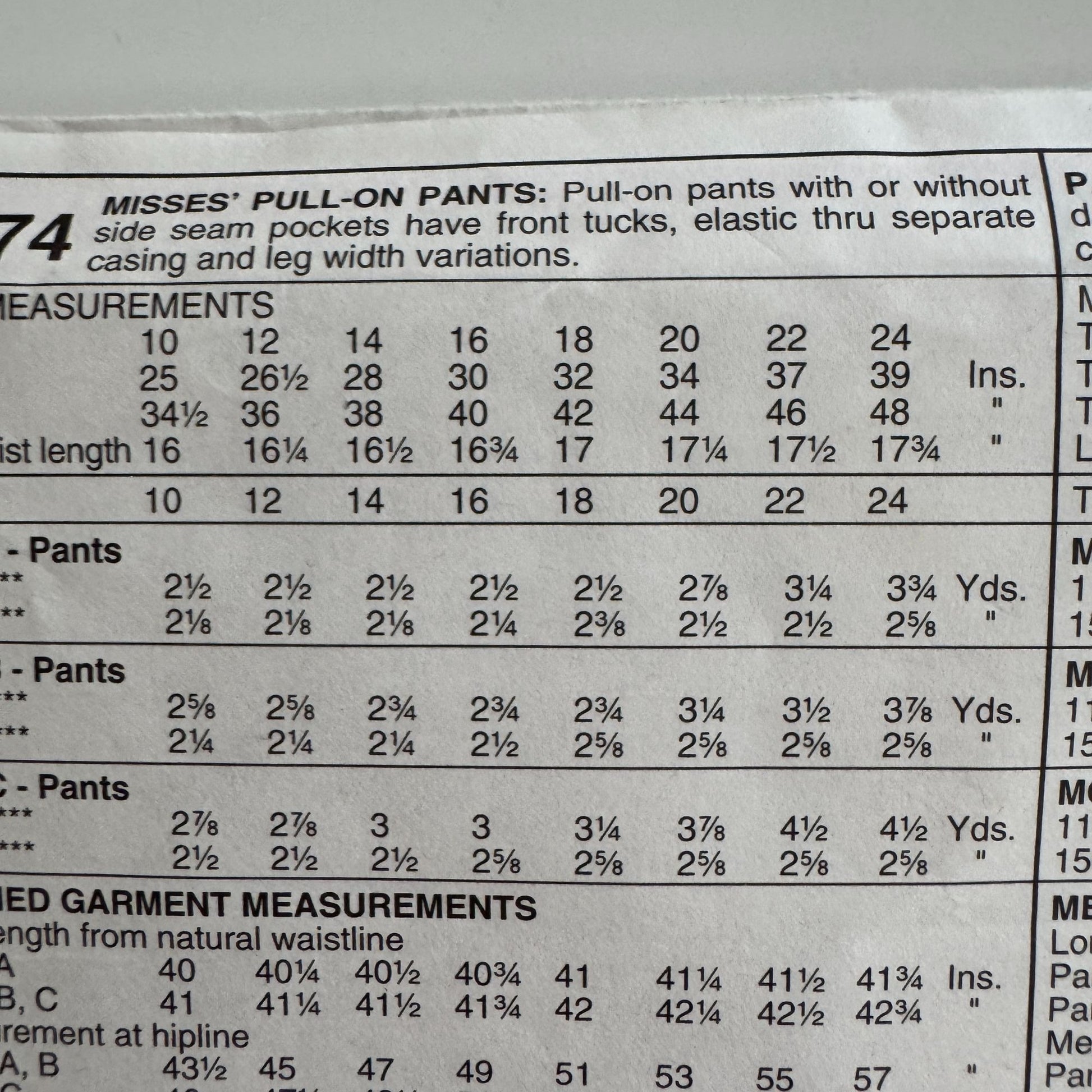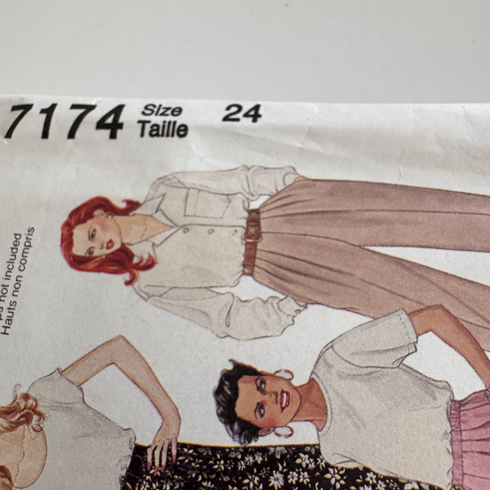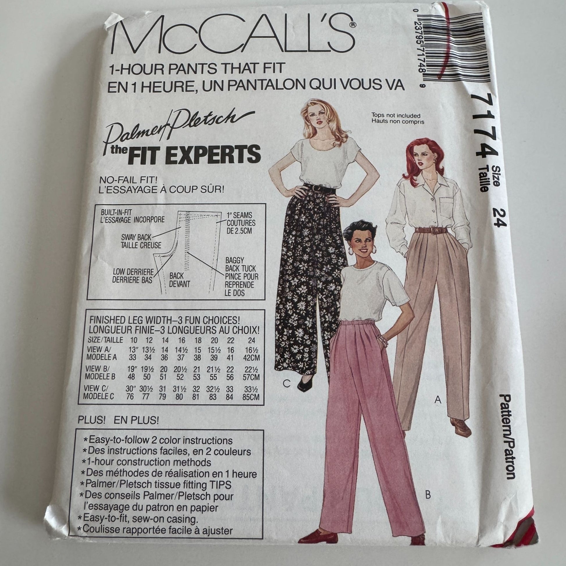 McCalls Sewing Pattern 7174 Misses Pants Work High Waist Easy Plus Size 24 Uncut