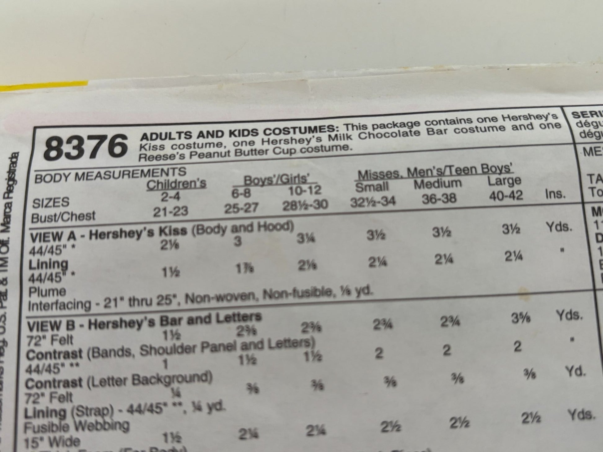 McCall's Costumes Sewing Pattern 8376: Hershey's Chocolate