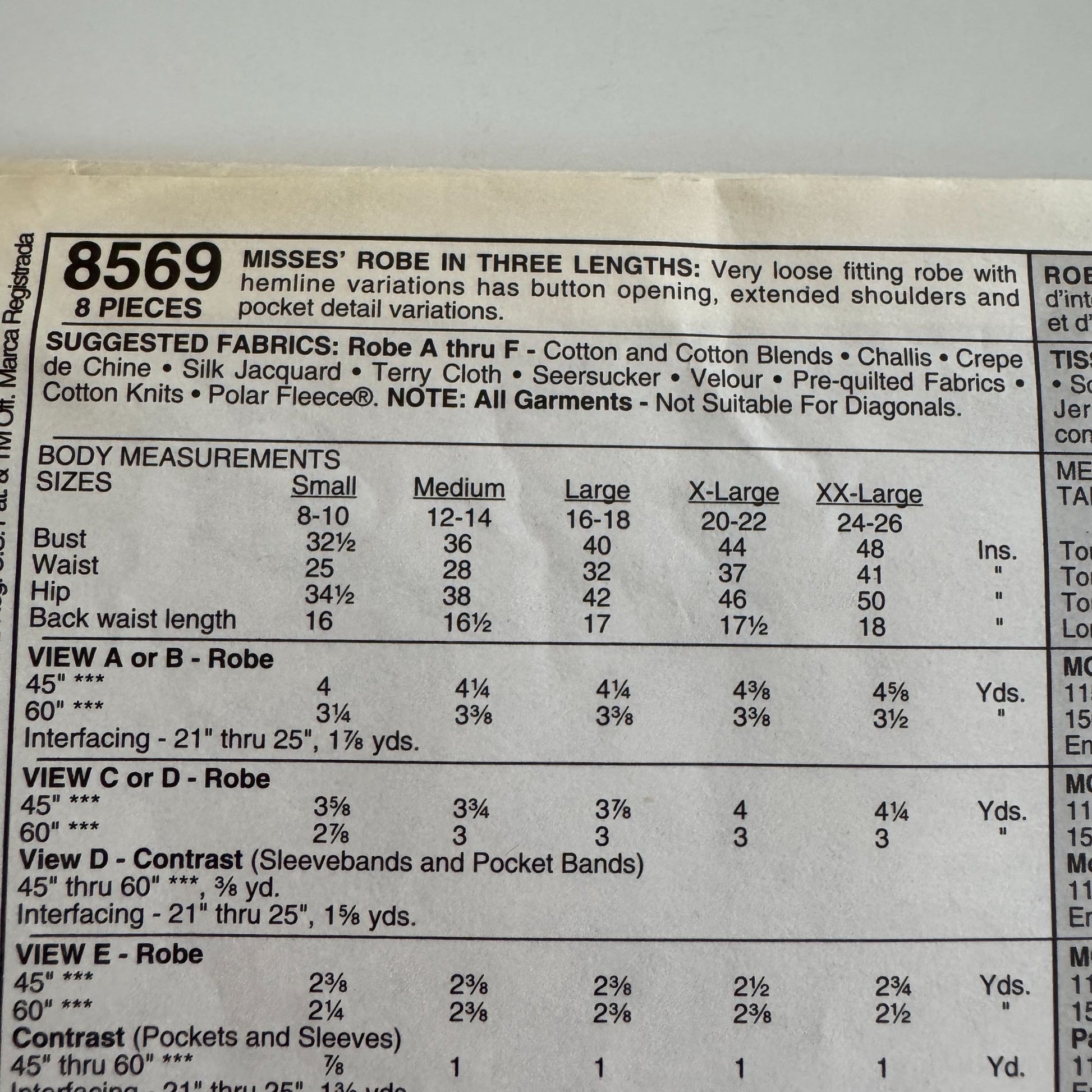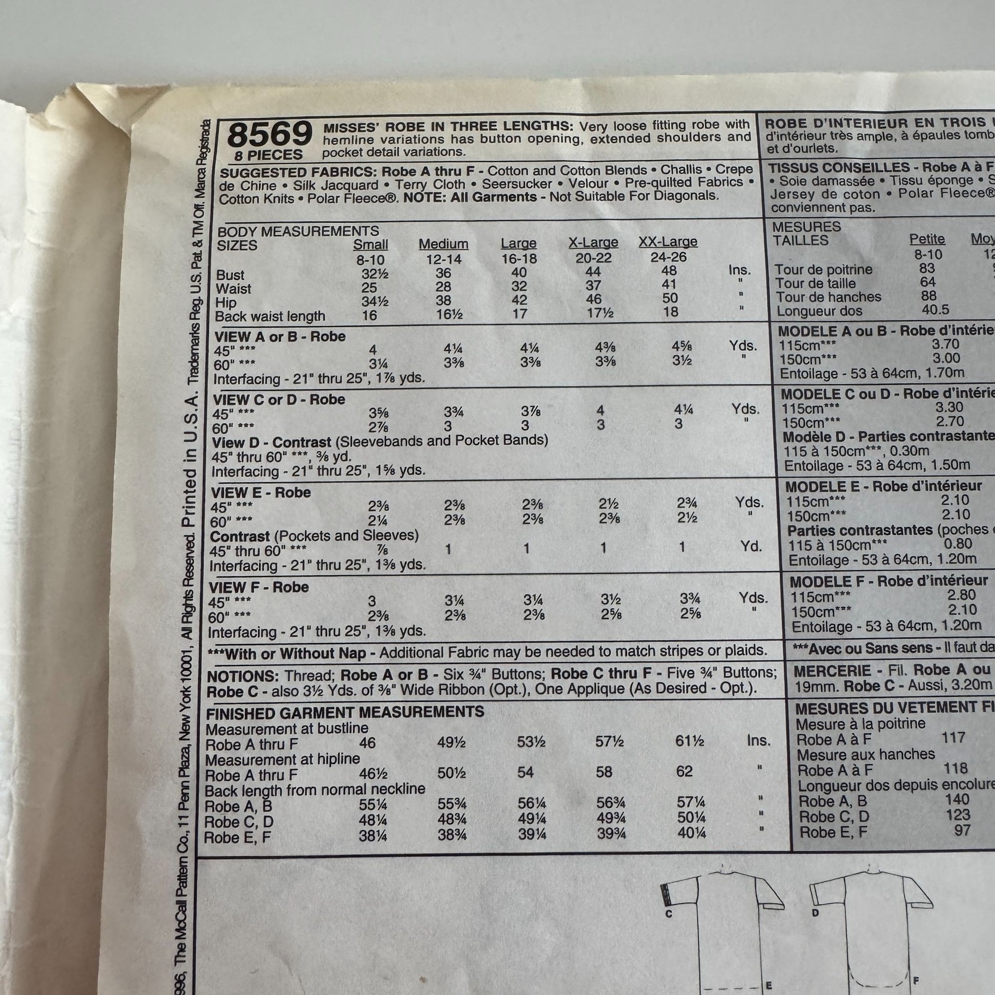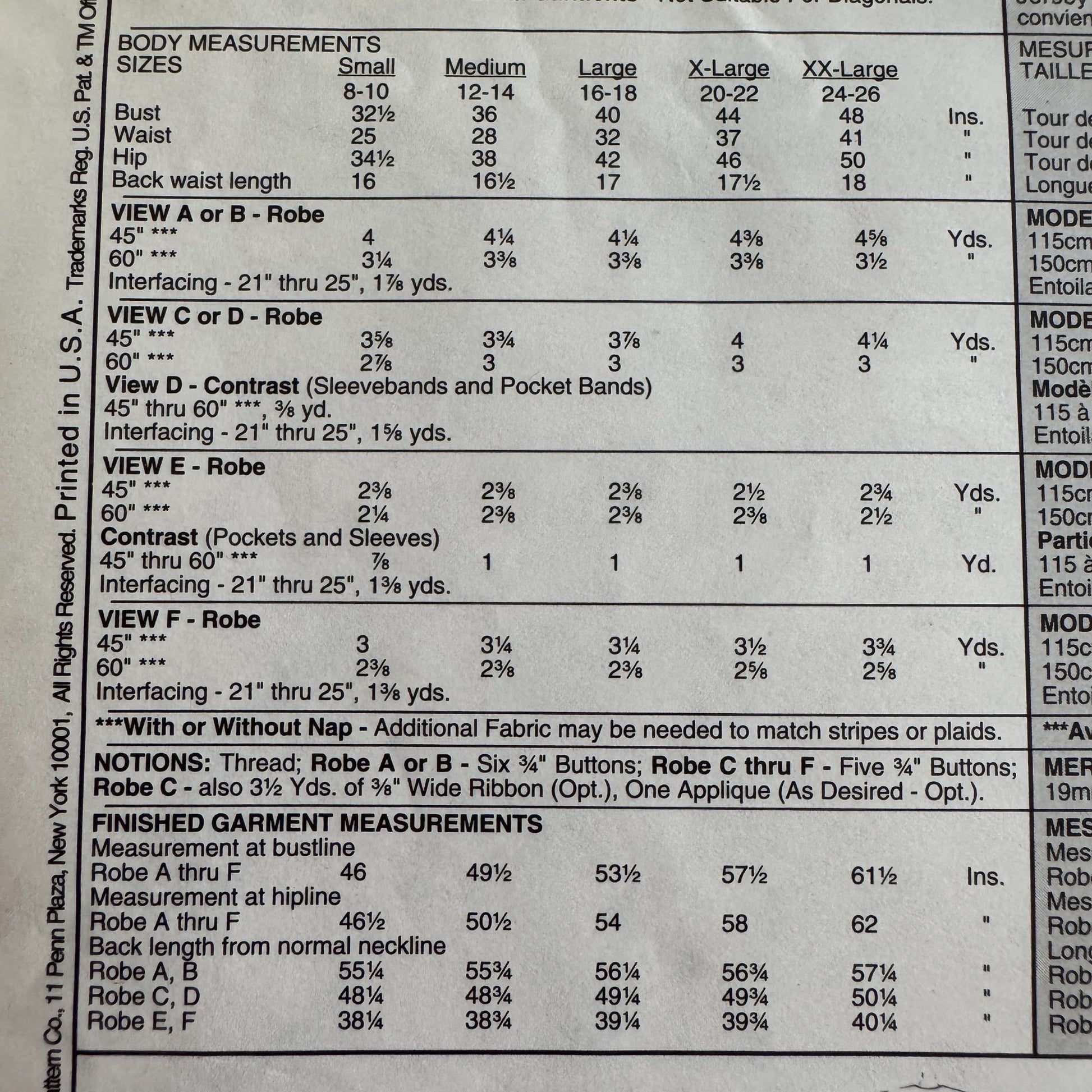 McCall's Sewing Pattern 8569: Misses' Robe in Three Lengths