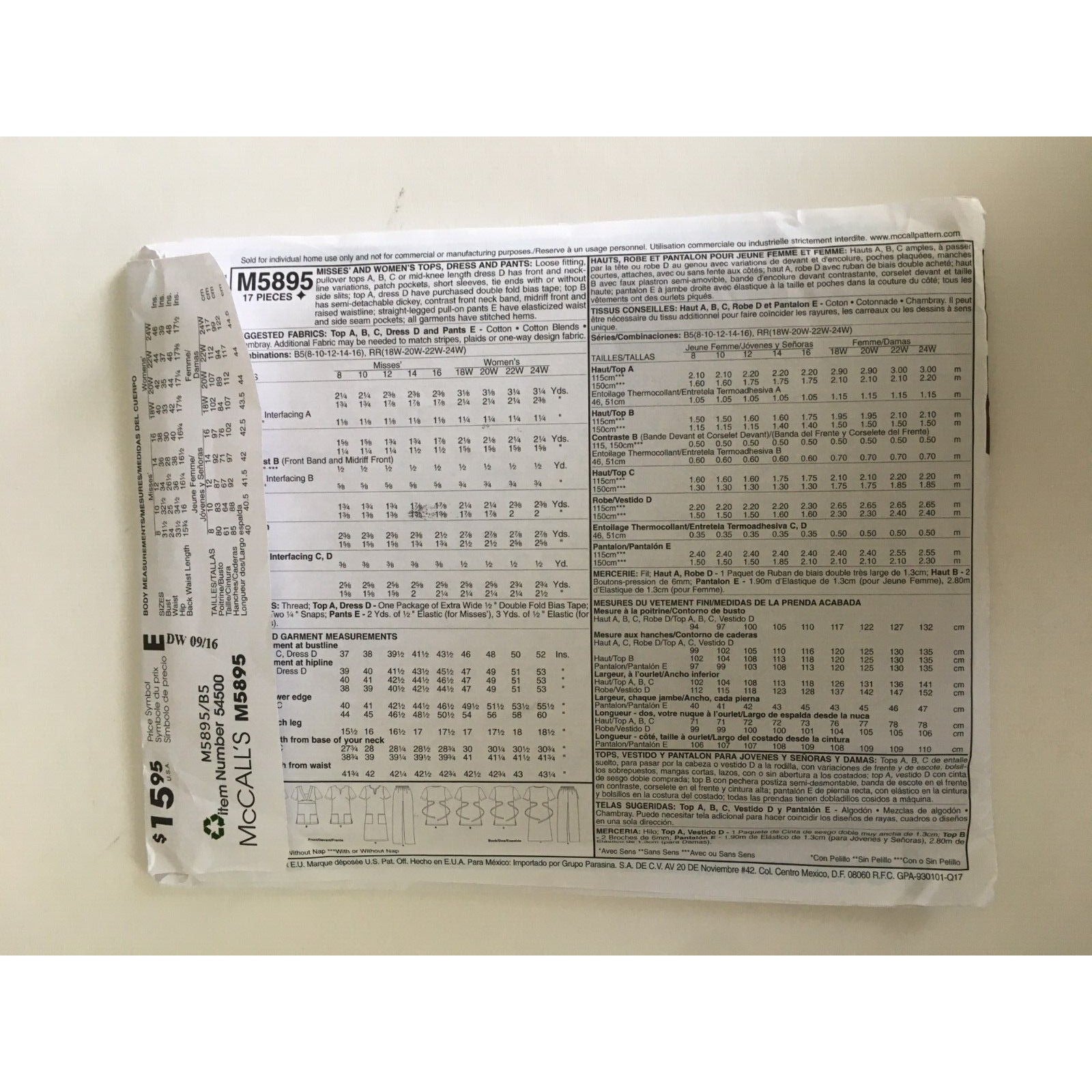 McCalls Sewing Pattern M5895 Nursing Scrubs Uniform Essentials Top Pants 8-16 UC