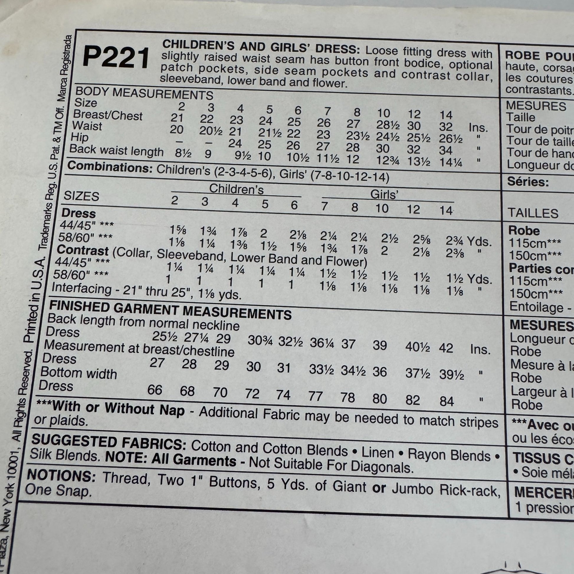 • Pattern Includes Girls' Sizes 2-6