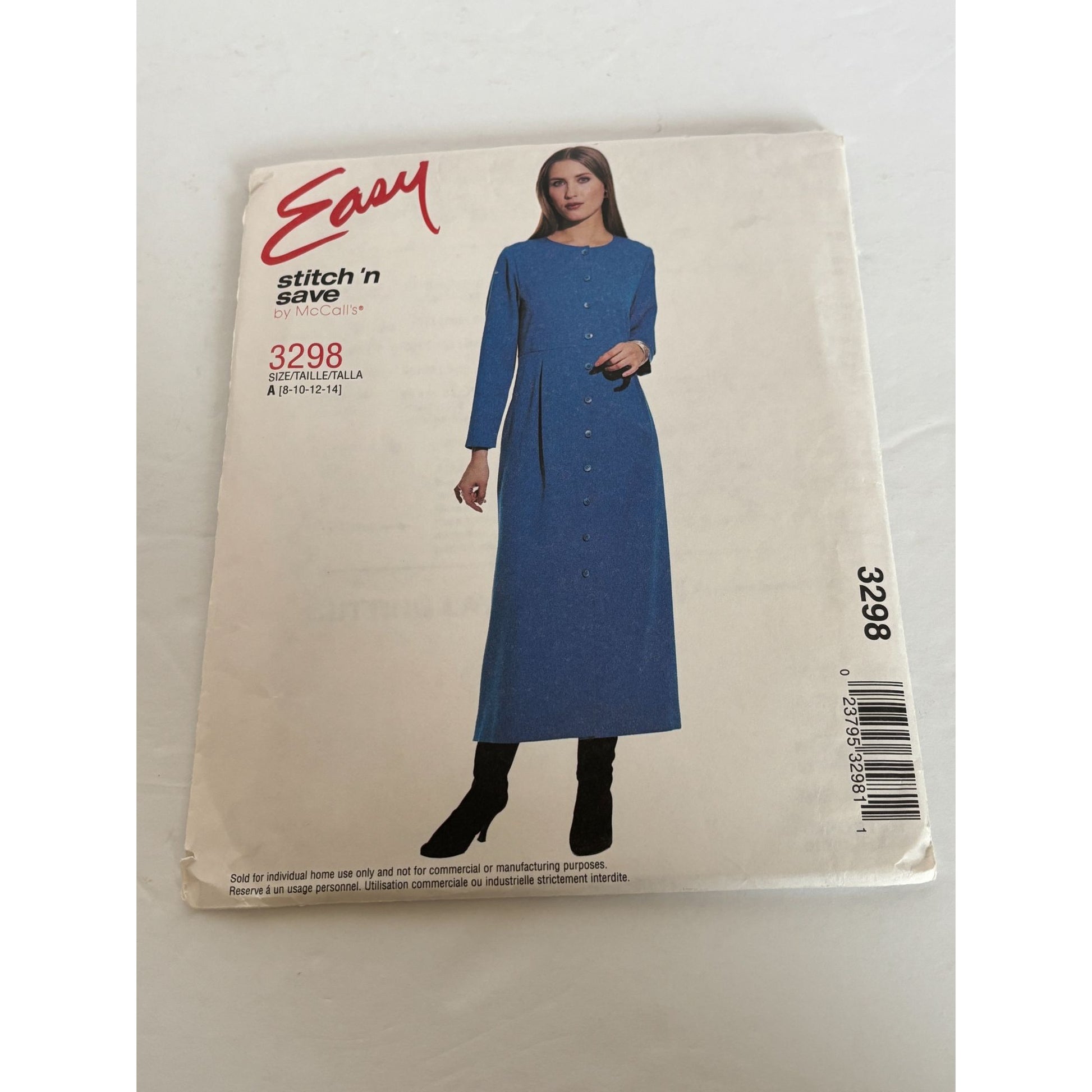 McCalls Stitch N Save Sewing Pattern 3298 A-Line Dress Long Sleeve Pockets 8-14
