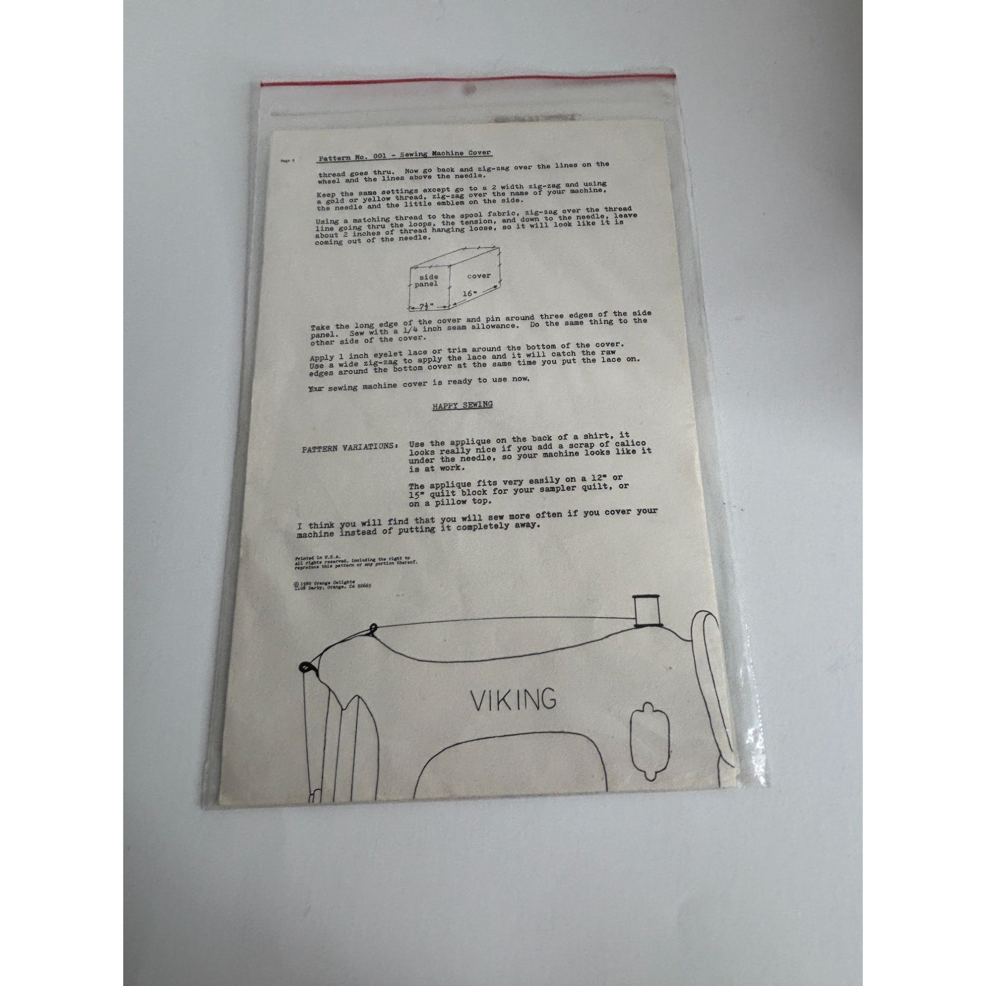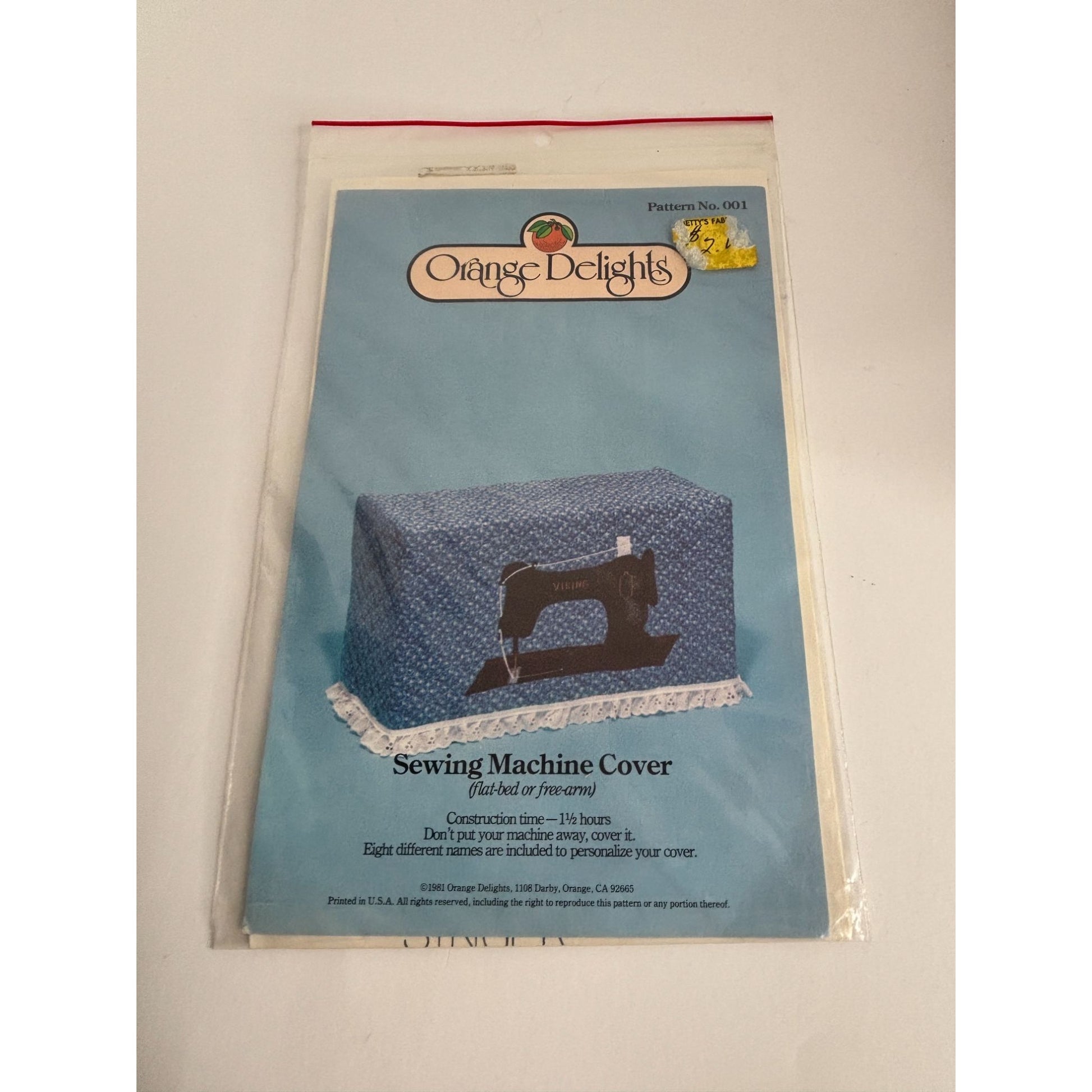 Orange Delights Sewing Pattern Sewing Machine Cover Home Decor 1980s Sewing Room
