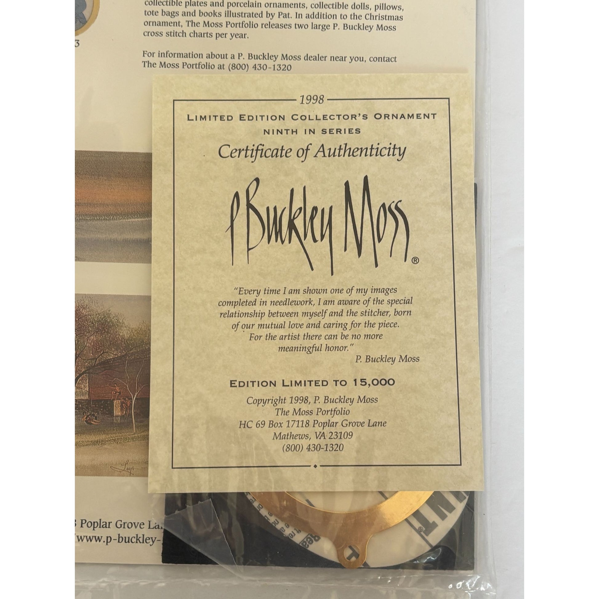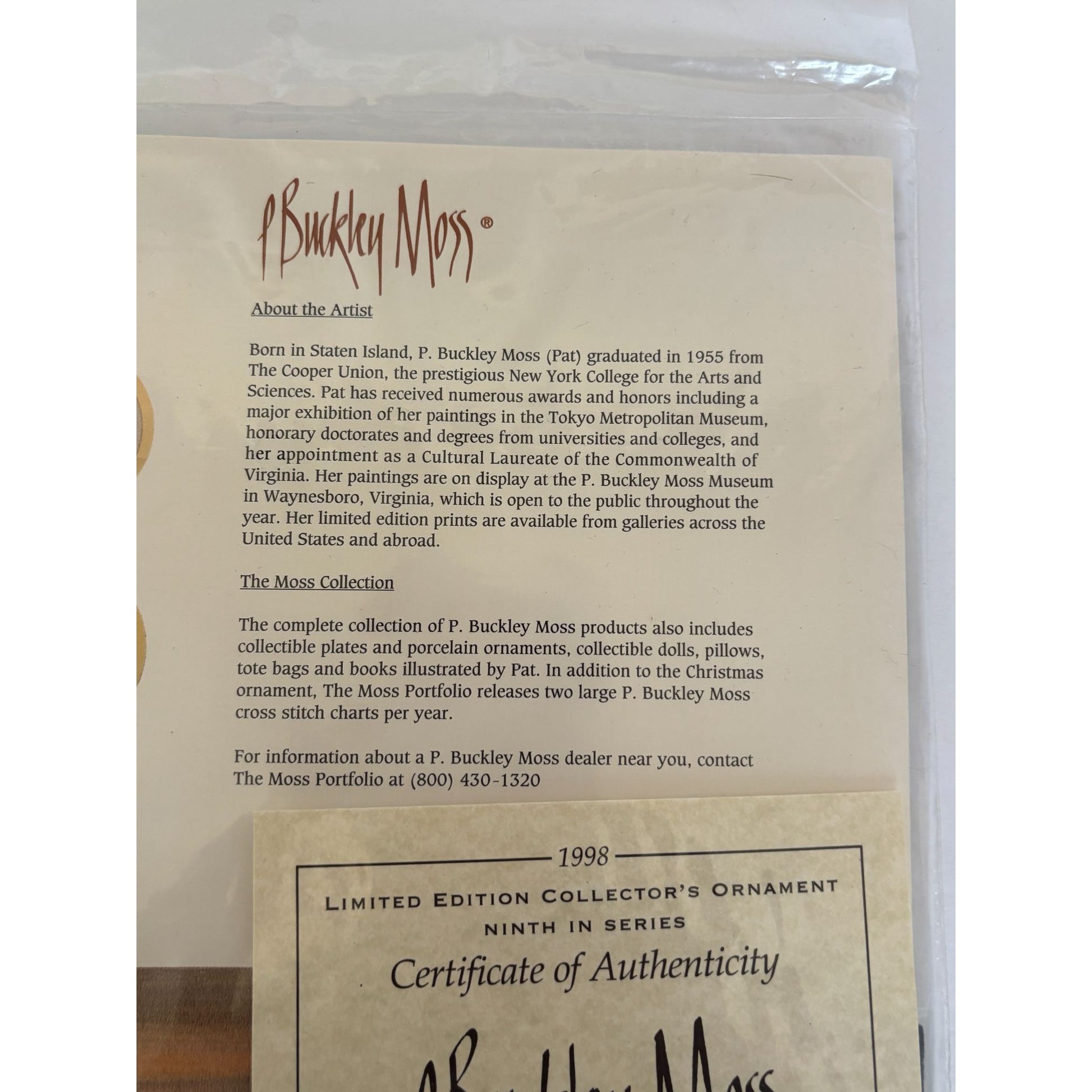 P Buckley Moss 1998 Limited Edition Christmas Ornament