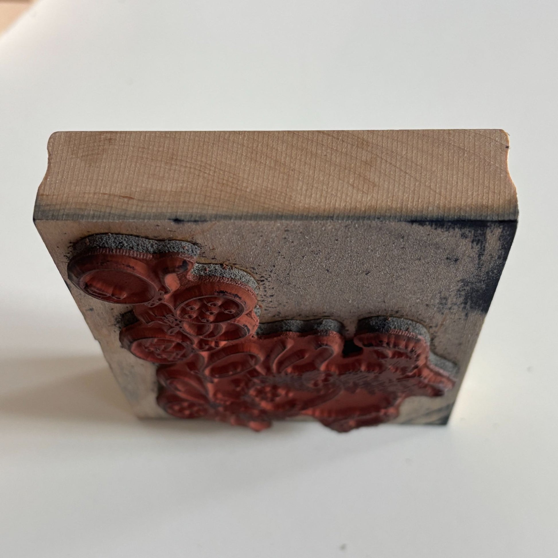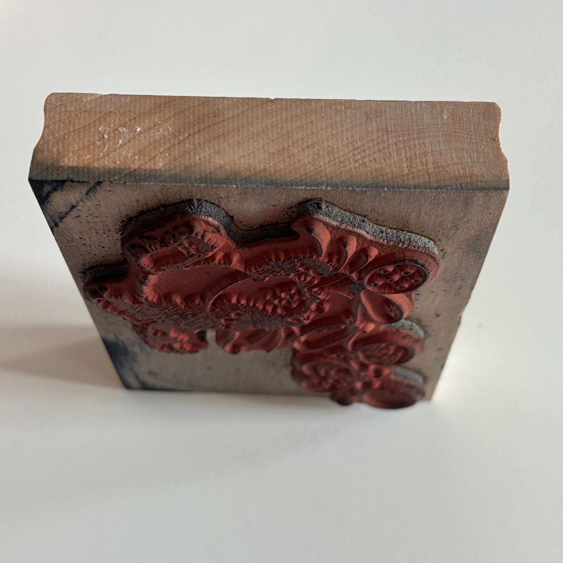 • Gently used. Ink stains on wood mount.