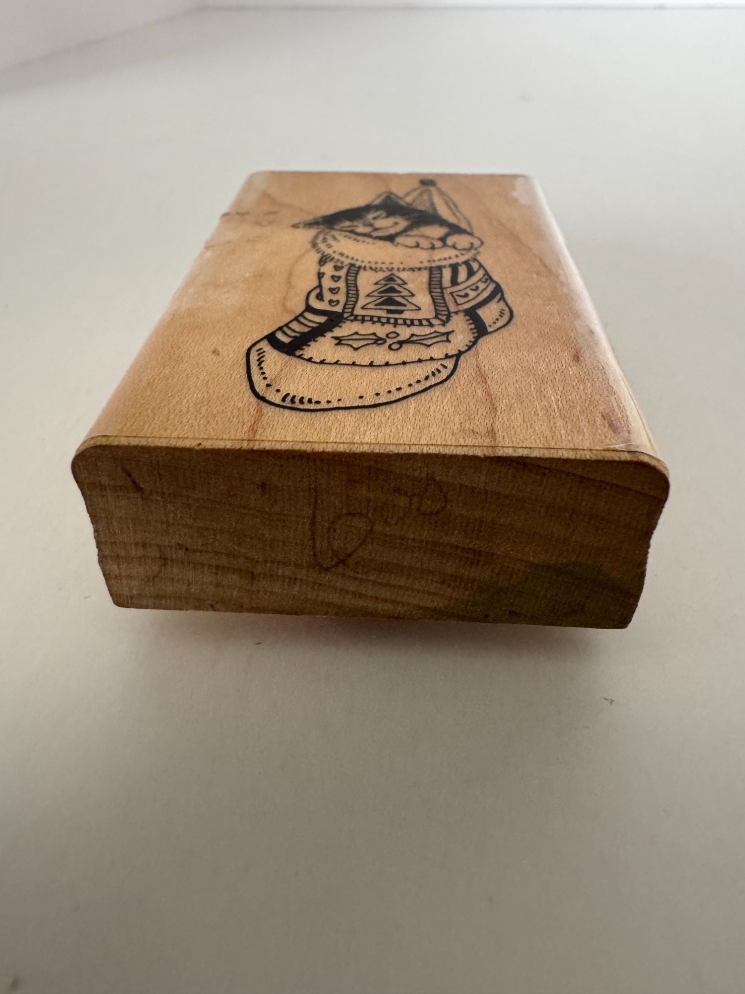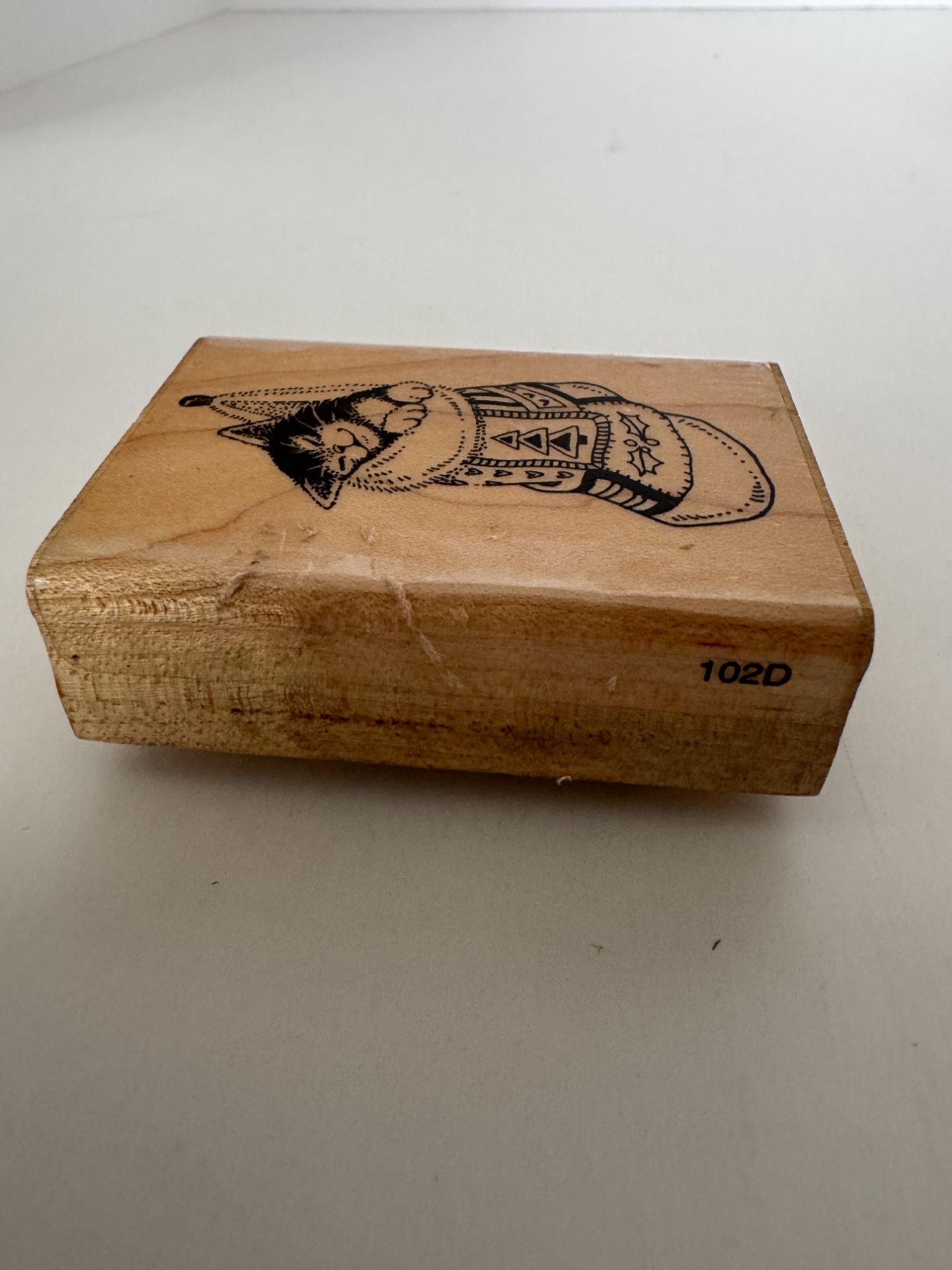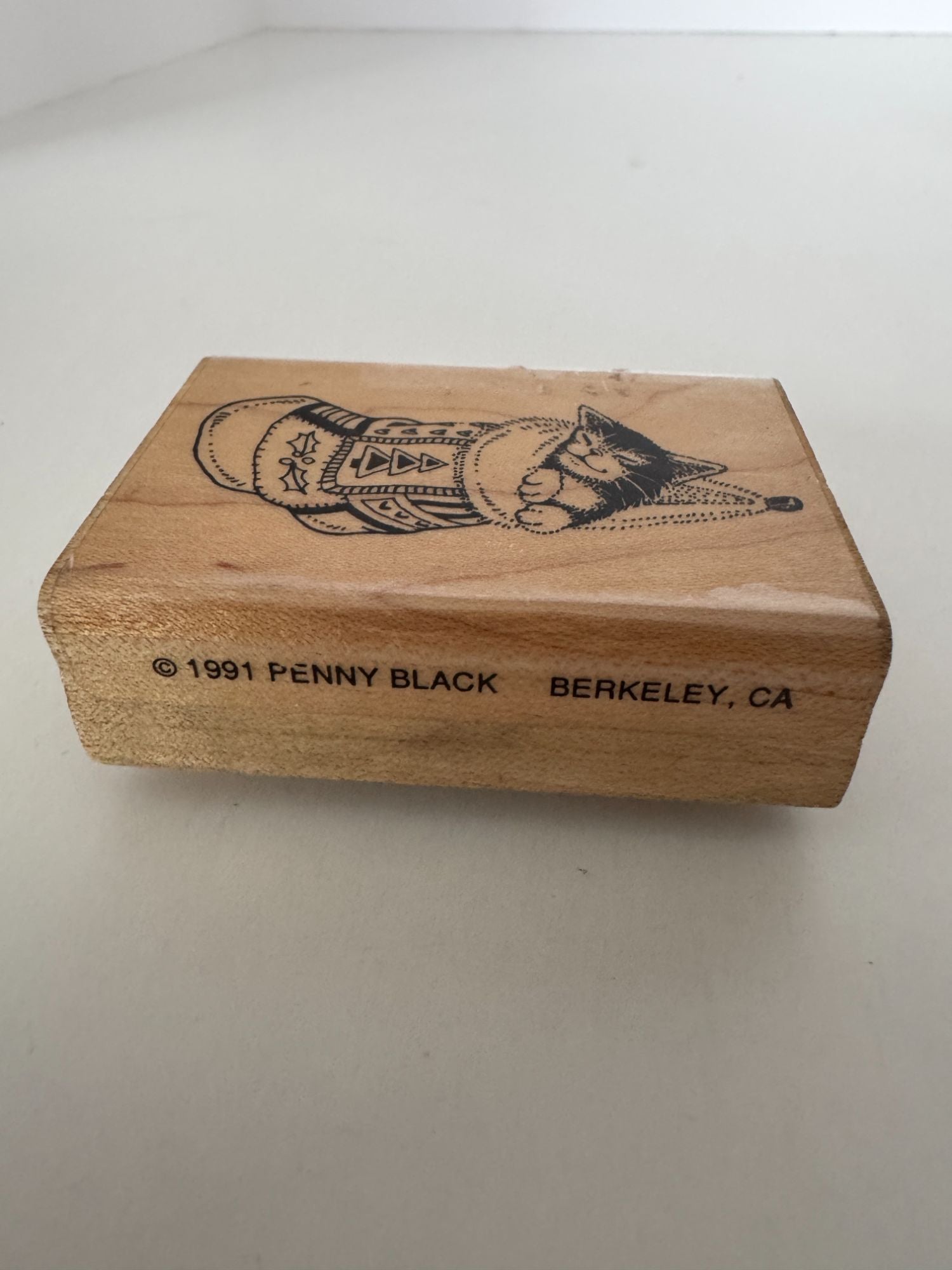 Penny Black Rubber Stamp Cat In Stocking Smile Nap Christmas Card Making Holiday