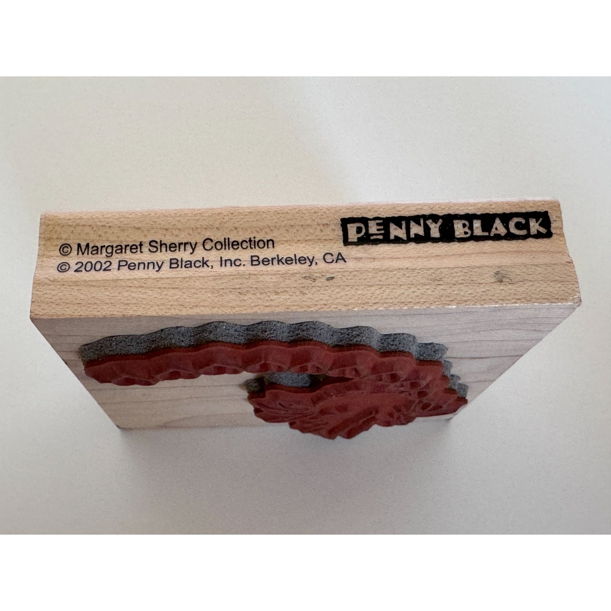 This stamp is part of the Margaret Sherry Collection, features a charming design ideal for crafting enthusiasts. Its durable wood mount and intricate detailing make it suitable for adding a personal touch to various projects and artwork.