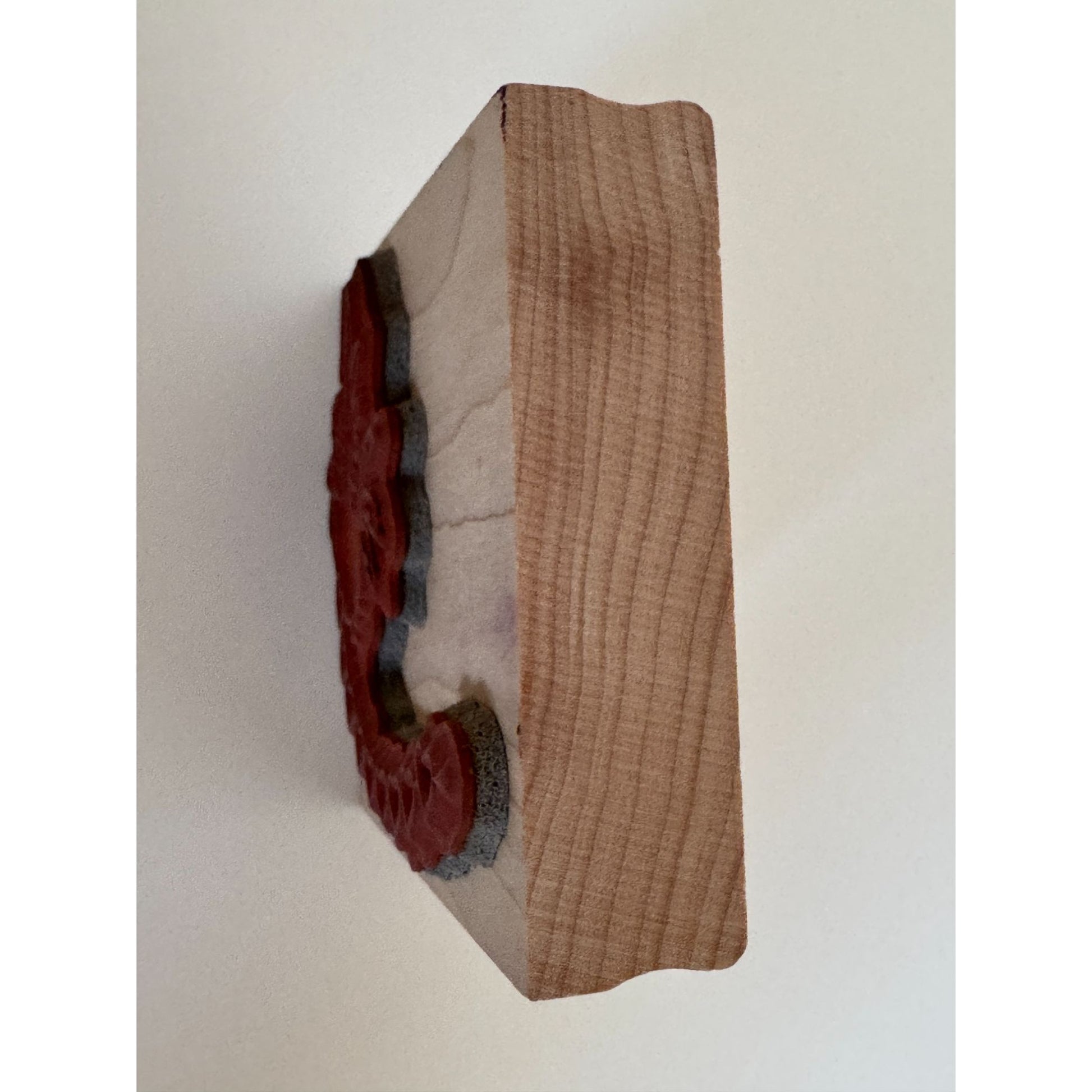 • Clean rubber, some ink stains on wood mount
