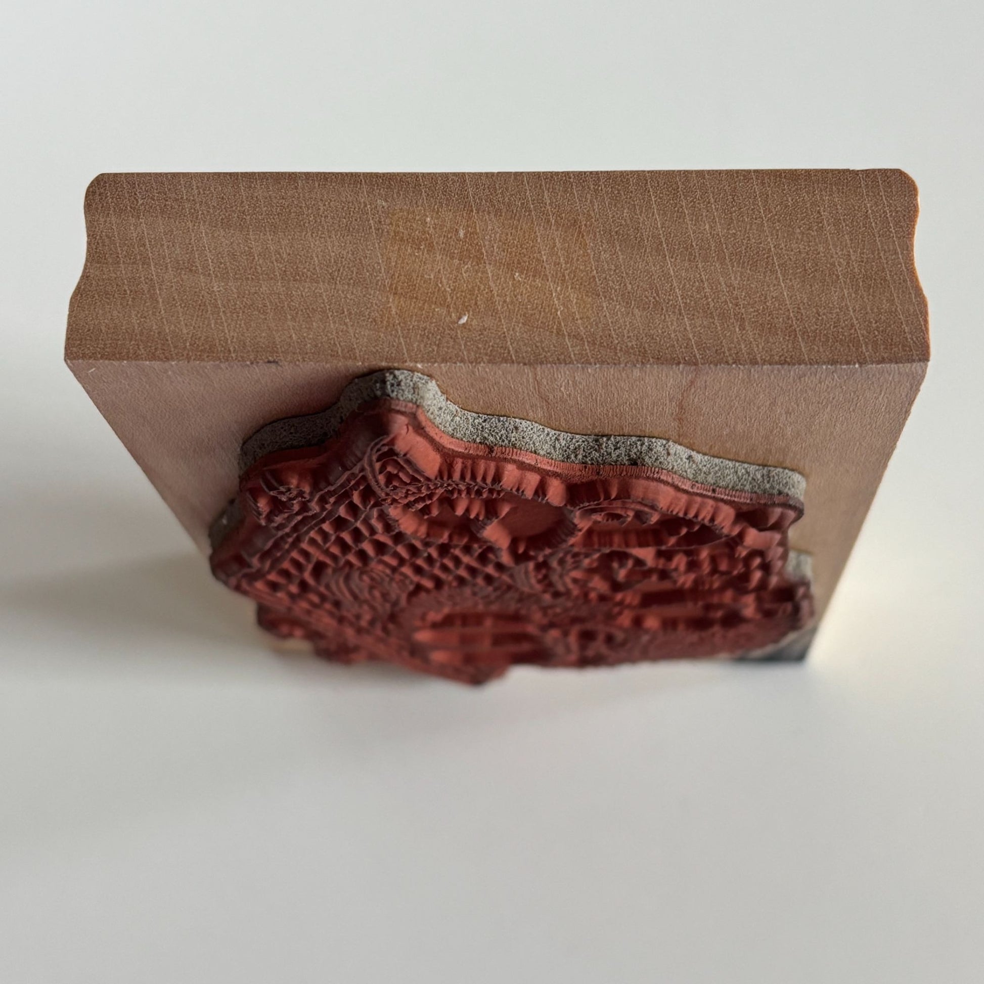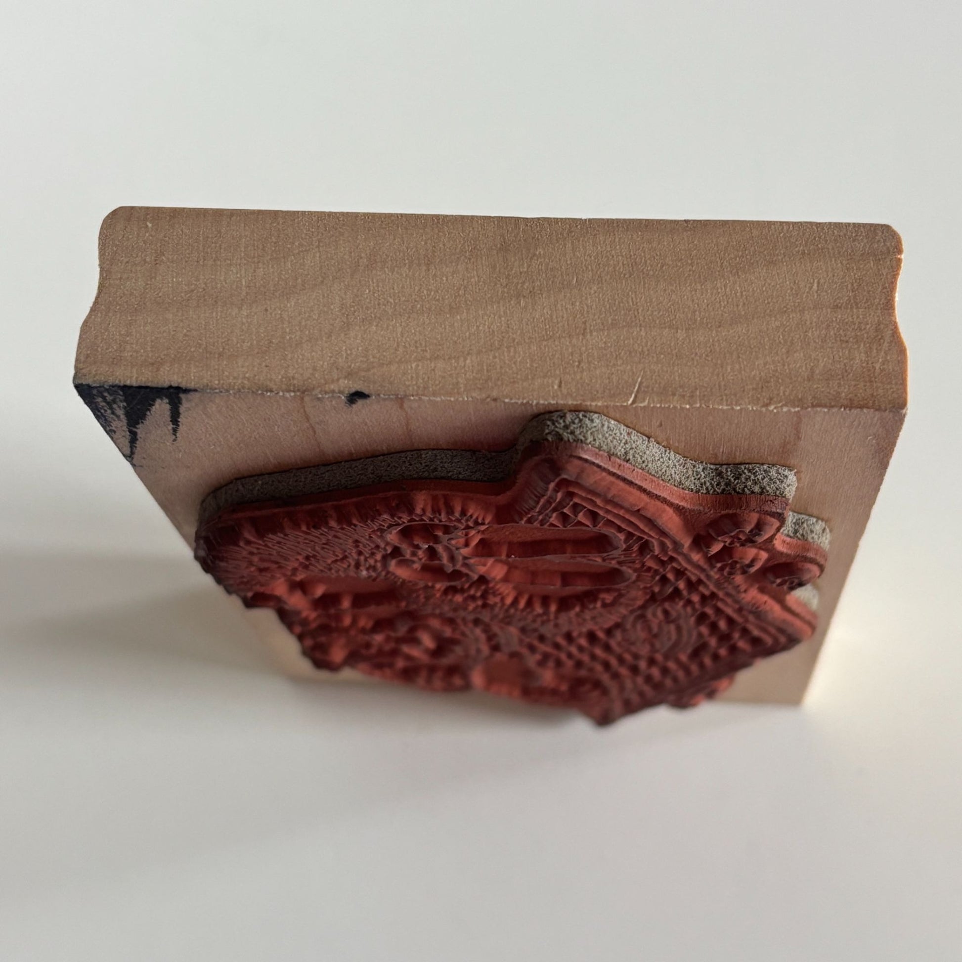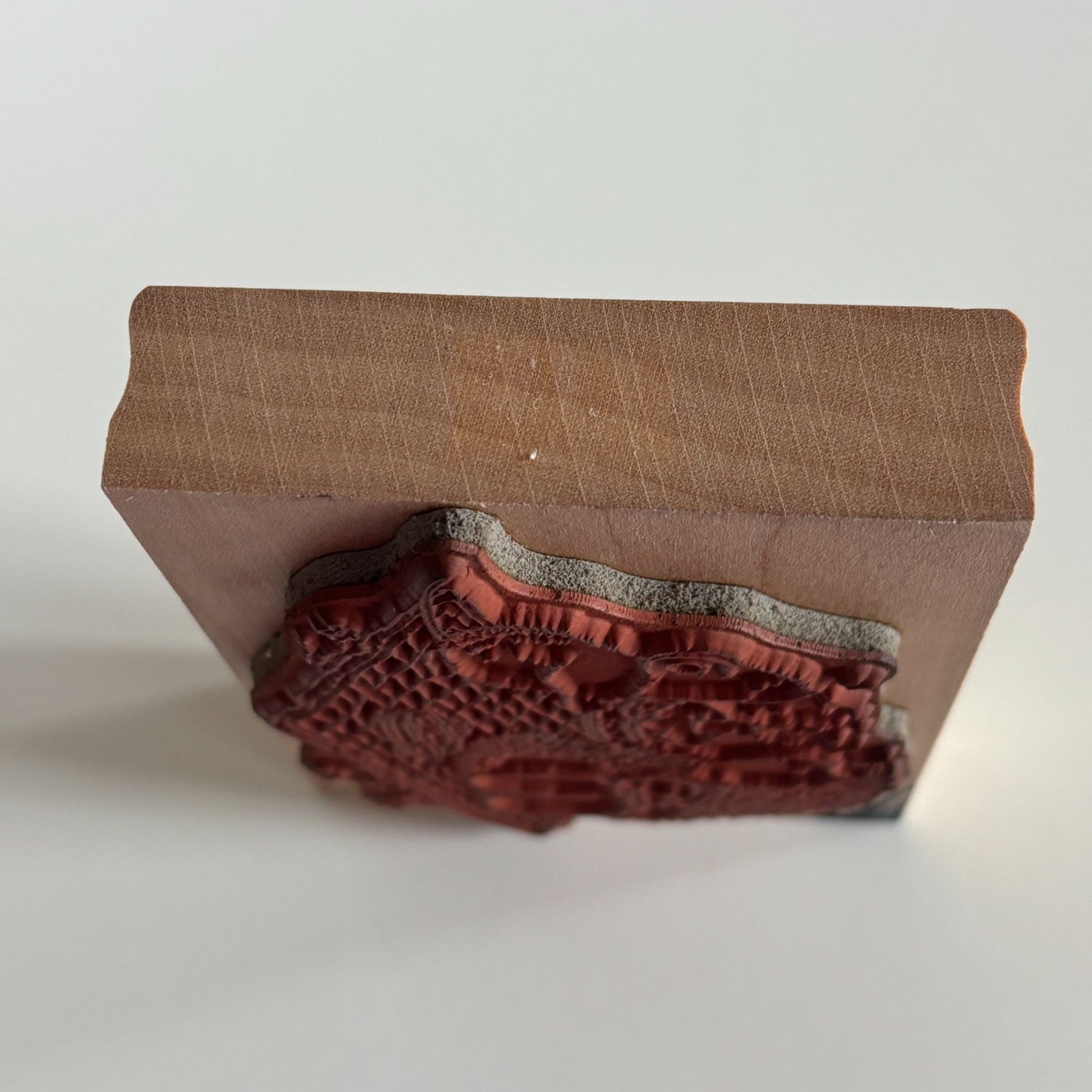 • Gently used condition with ink stains on wood mount