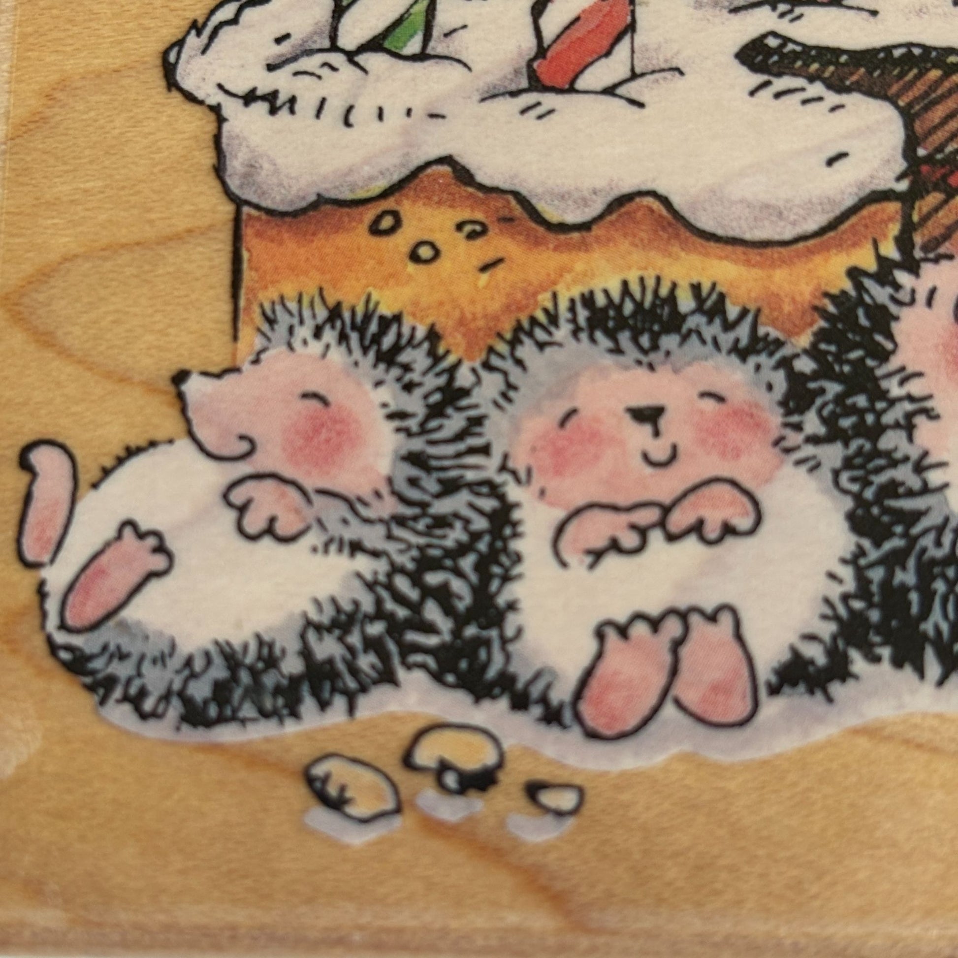 This whimsical rubber stamp is a must-have for hedgehog enthusiasts and birthday card creators. Featuring adorable hedgehogs celebrating with cake and candles, it's sure to bring a smile to anyone's face.